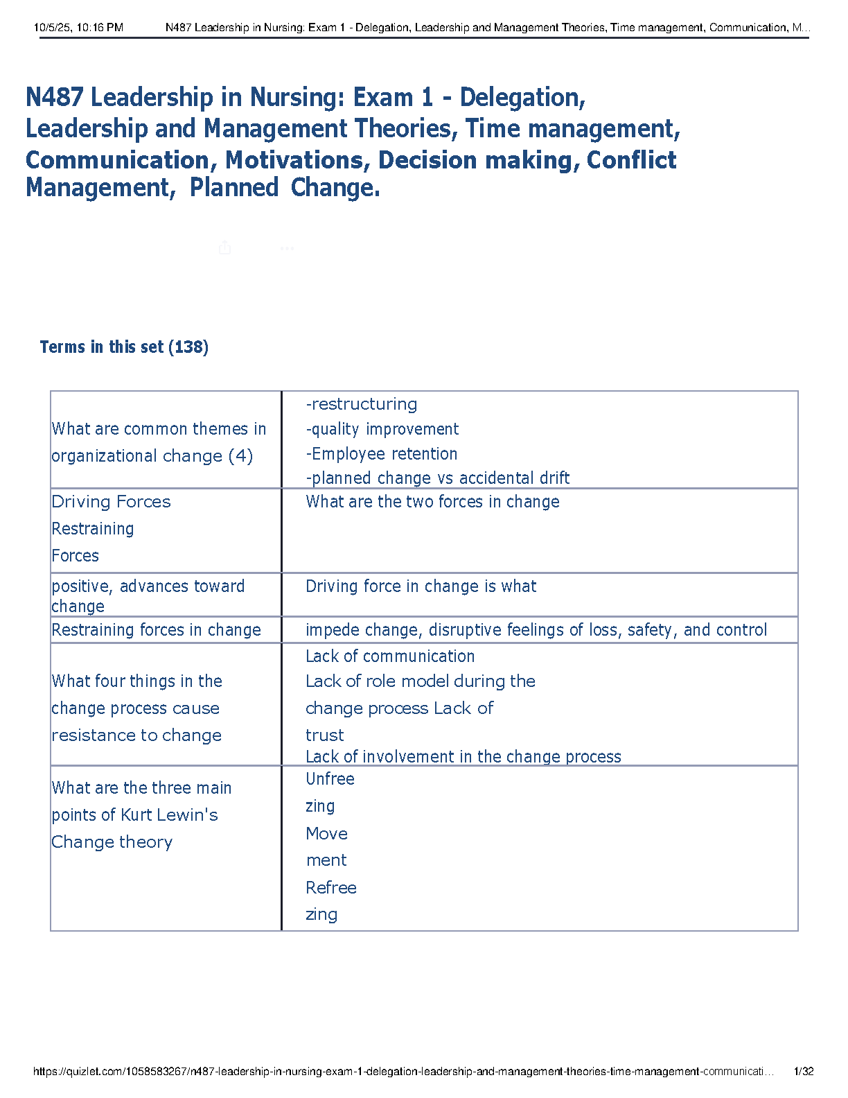 Unlock success in your N487 Leadership in Nursing course with our definitive study guide for Exam 1, fully updated for the 2025/2026 academic year. This comprehensive resource, meticulously aligned with Marquis & Huston's 'Leadership Roles and Management Functions in Nursing' 11th Edition, covers all critical topics including Delegation, Leadership Theories, Communication, Conflict Management, and Planned Change. Featuring 138 essential terms in an easy-to-digest Q&A format, this guide is engineered to help you grasp complex concepts and ace your exam on the very first try. Stop worrying about resits and start studying smarter with the ultimate tool for guaranteed success in nursing leadership.