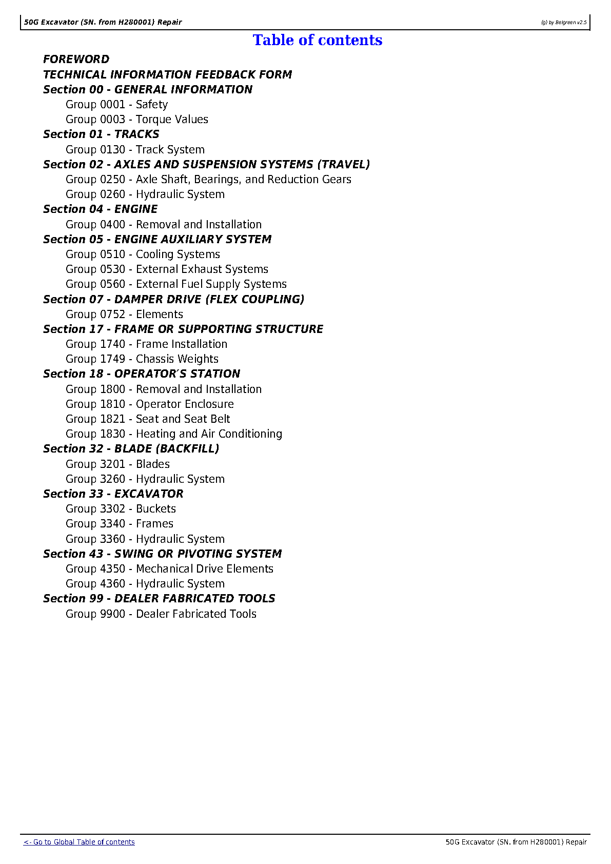 Unlock comprehensive service and repair procedures with the official John Deere Technical Manual TM12888 for the 50G FT4 Excavator (applicable to serial numbers H280001 and up). This in-depth guide is your ultimate resource for maintenance, troubleshooting, and complete overhauls. Featuring detailed diagrams, specifications, and step-by-step instructions from John Deere Construction and Forestry, this manual empowers technicians and owners to keep their equipment in optimal condition.