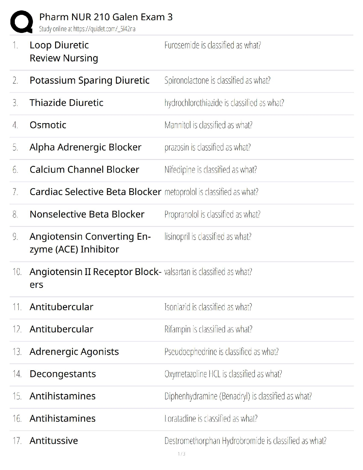 Unlock success in your pharmacology course with our comprehensive study guide for Pharm NUR 210 Galen Exam 3. Designed for the 2025/2026 academic year, this resource is your key to mastering complex drug classifications and passing your exam on the very first attempt. This guide provides a detailed review of essential medication categories, including Diuretics, Beta-Blockers, ACE Inhibitors, Antihistamines, and many more. Each drug is clearly linked to its classification, ensuring you build the core knowledge needed for exam success. Stop struggling with memorization and start studying smarter to excel in NUR 210.