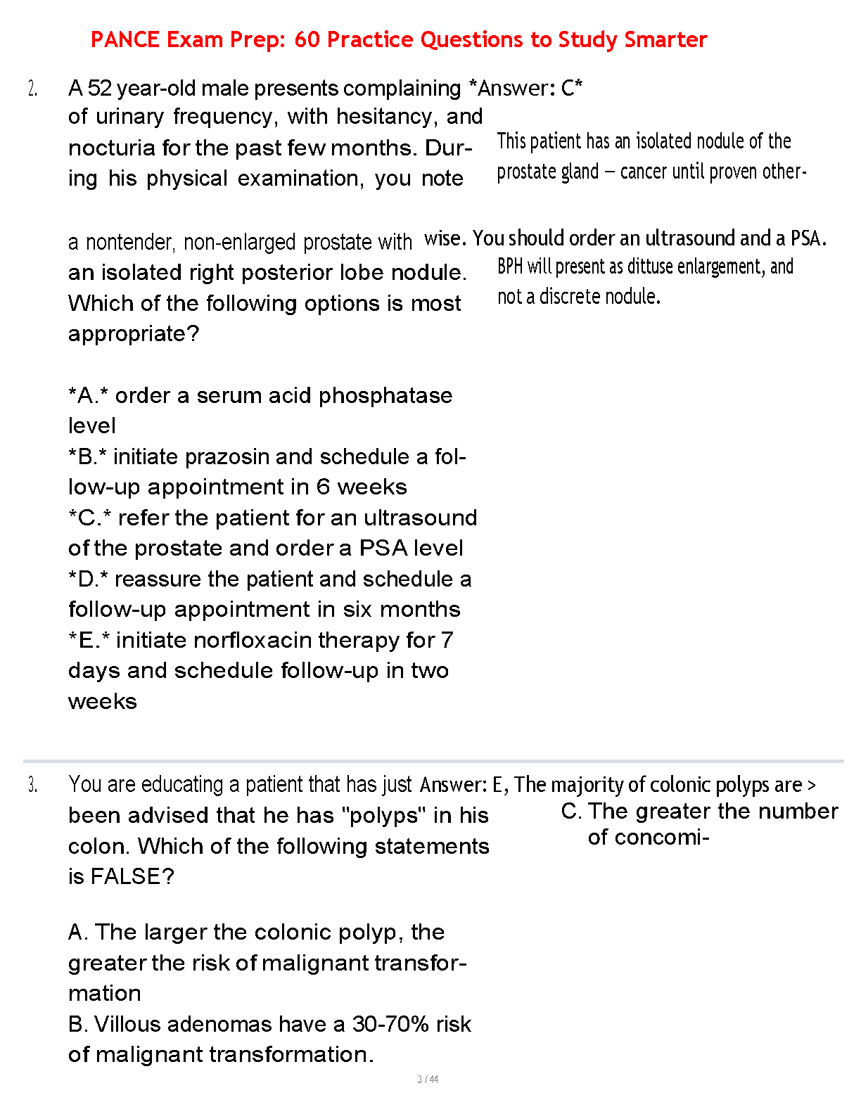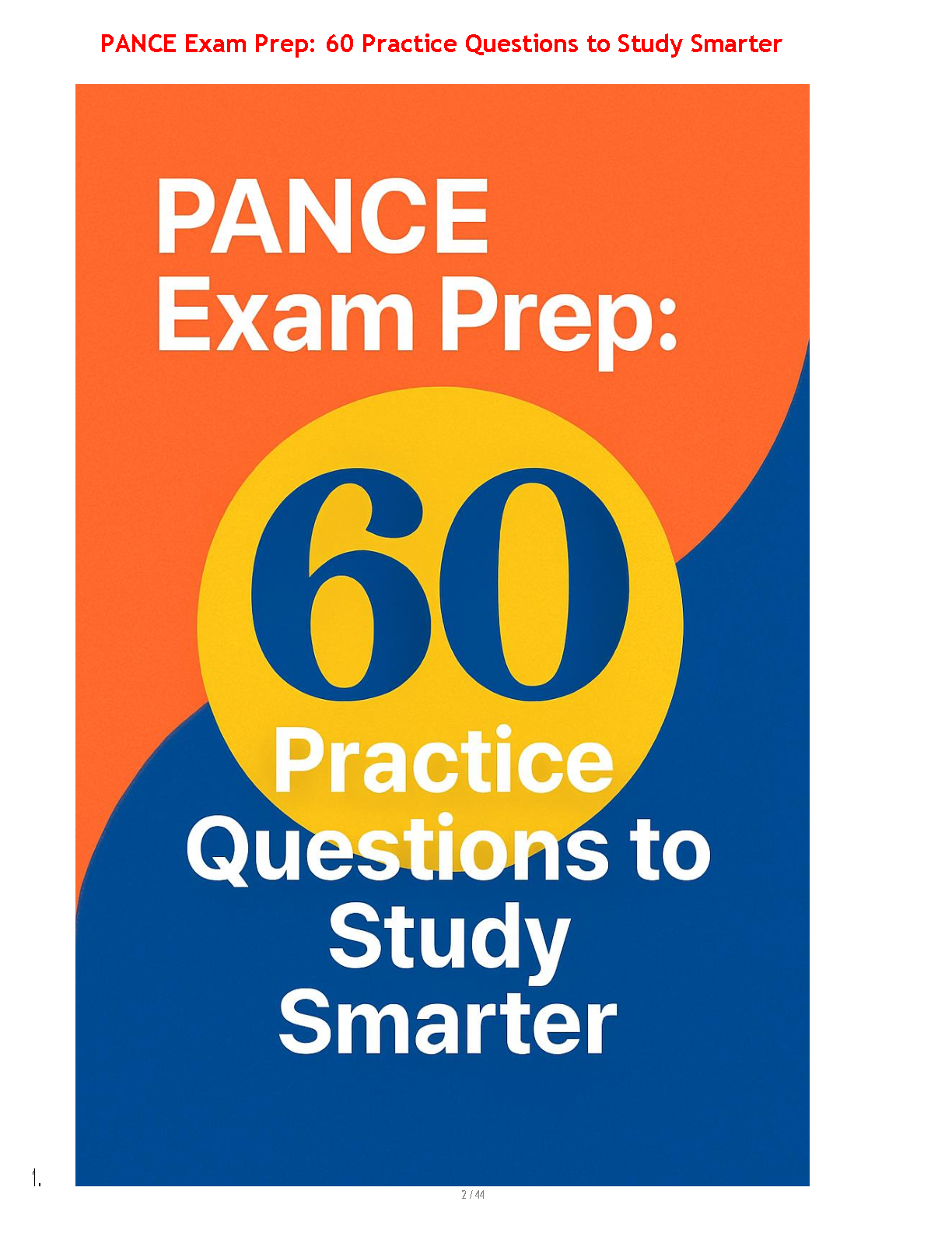 Supercharge your PANCE preparation with our latest 2025/2026 Test Bank! This comprehensive resource features 60 expertly crafted practice questions designed to mirror the actual exam format and content. Move beyond simple memorization and learn to 'study smarter' by tackling high-yield topics and understanding detailed rationales. This essential study guide is your key to building confidence, mastering the material, and successfully passing the PANCE on your very first attempt. Don't leave your certification to chance—get the practice you need to excel!