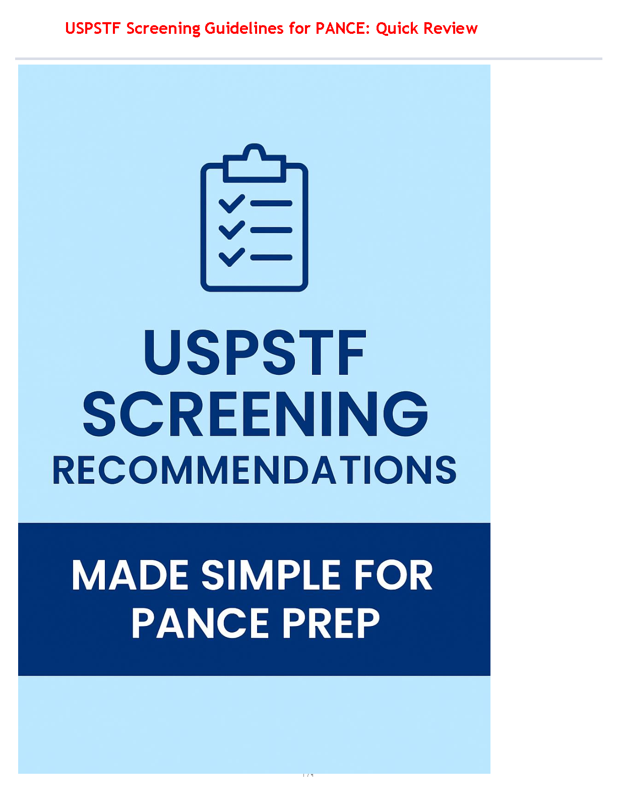 Latest 2025/2026 PANCE Study Guide: USPSTF Screening Recommendations Made Simple - Your Ultimate Resource to Pass on the First Attempt