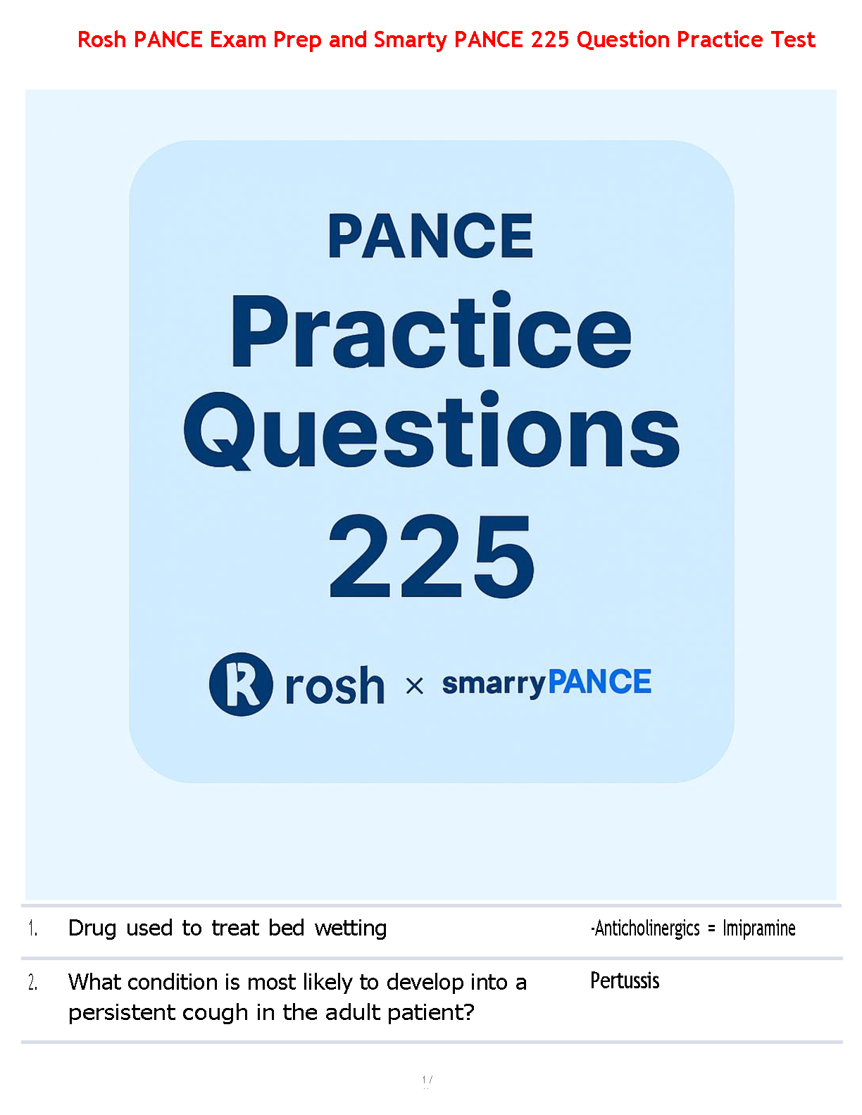 Ace your Physician Assistant National Certifying Examination (PANCE) with this powerful test bank, a collaboration between Rosh Review and Smarty PANCE. This essential study guide features 225 high-yield practice questions complete with detailed, verified answers to ensure you're fully prepared. Sharpen your clinical knowledge, master the PANCE blueprint, and gain the confidence needed to pass on your first try. Ideal for final prep and identifying areas for improvement.