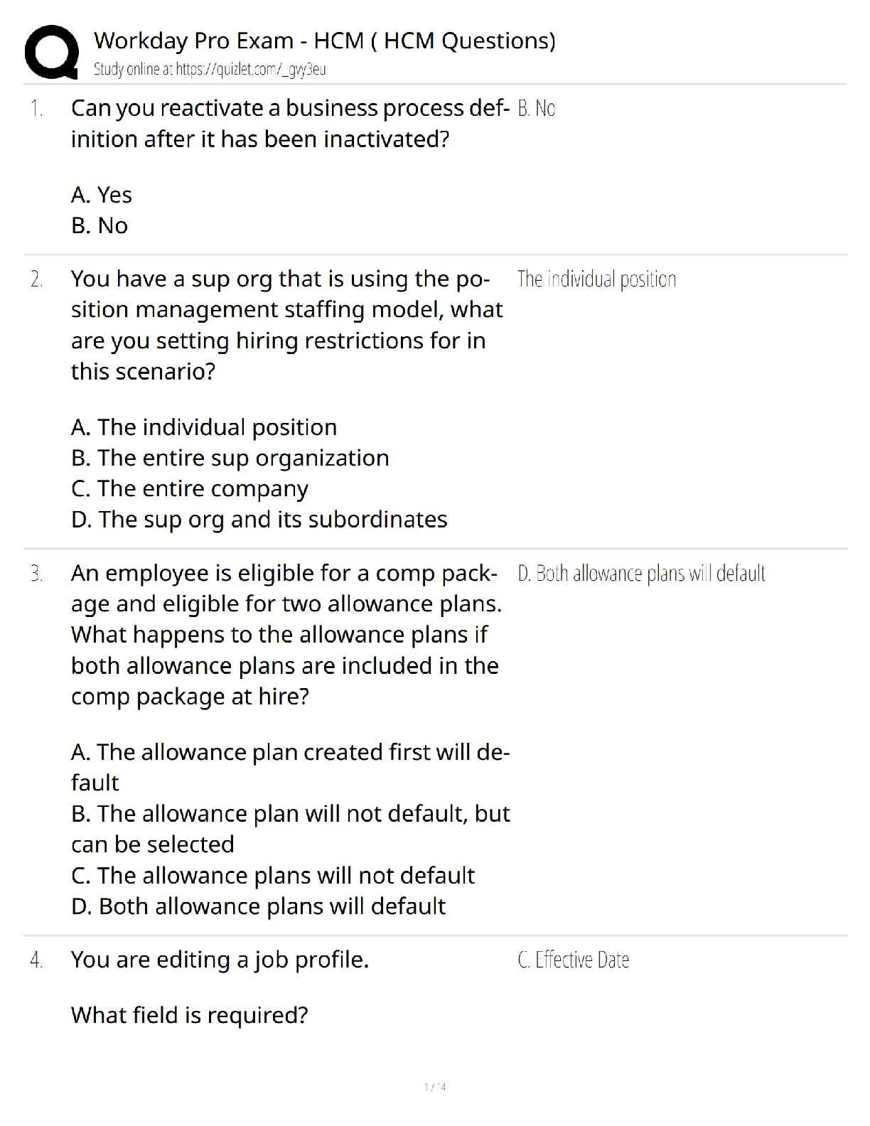 Unlock your career potential with our complete test bank for the Workday Pro HCM Certification Exam. This up-to-date 2025/2026 study guide provides a comprehensive collection of real exam questions and verified answers. Master key concepts in Human Capital Management, including business process configuration, staffing models, compensation packages, and more. Designed to help you ace the exam on your first attempt, this resource is your ultimate tool for success. Avoid resits and get certified faster with our expertly curated Q&A.