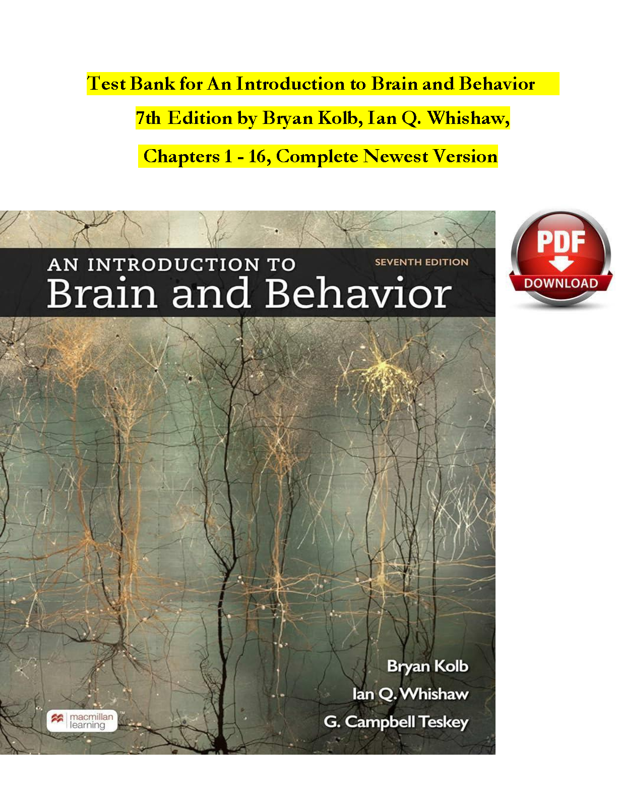 Official Test Bank for An Introduction to Brain and Behavior, 7th Edition by Bryan Kolb, Ian Q. Whishaw, & G. Campbell Teskey