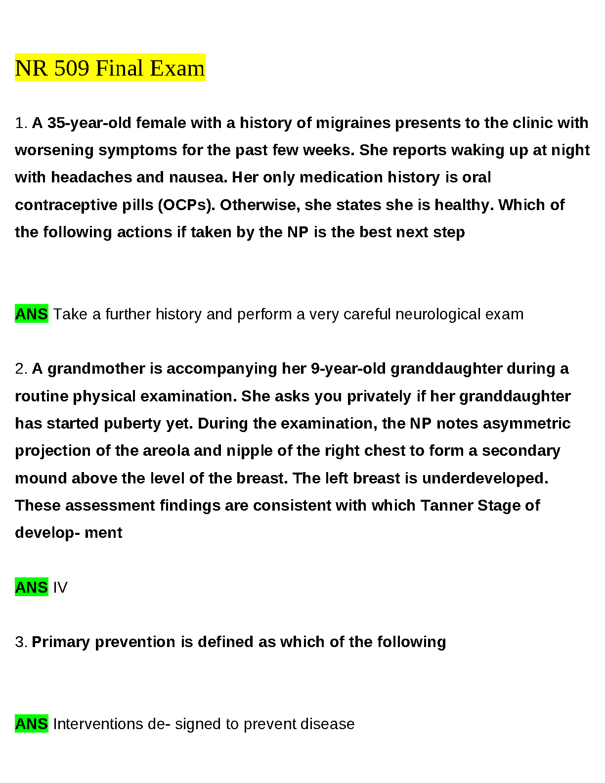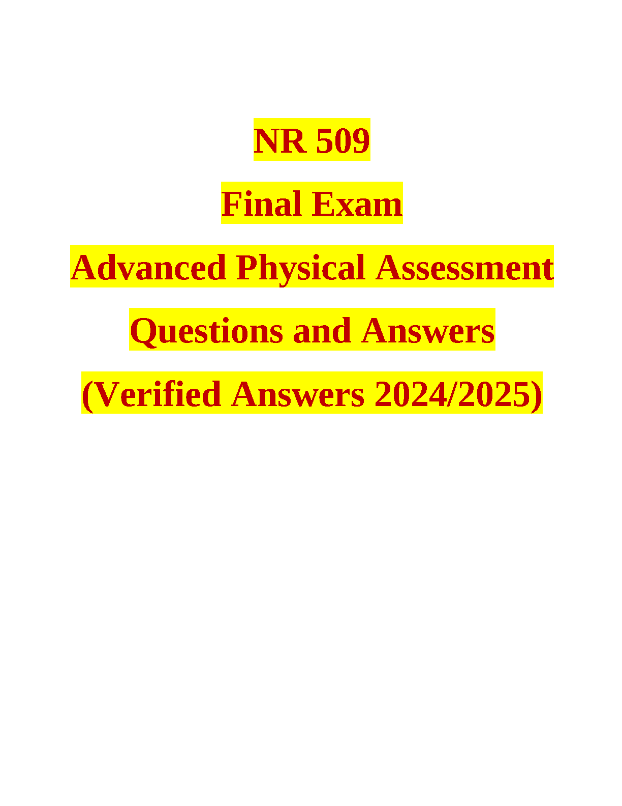 Ace your NR 509 Advanced Physical Assessment final exam with our comprehensive study guide for the 2024/2025 academic year. This resource provides a complete set of exam questions with 100% accurate, verified answers. Designed to help you master key concepts and pass on your first attempt, this is the ultimate preparation tool for success in your course. Download now and study with confidence!