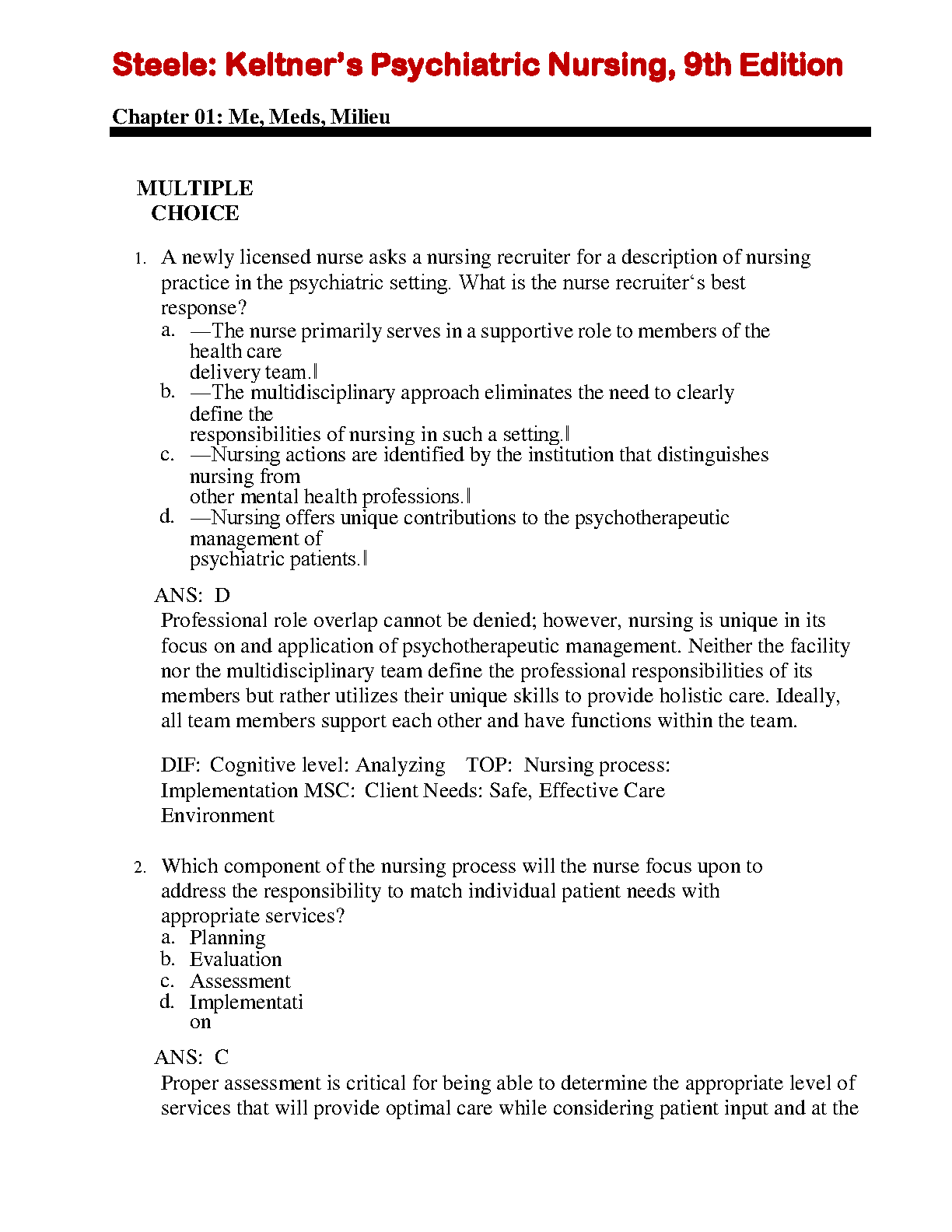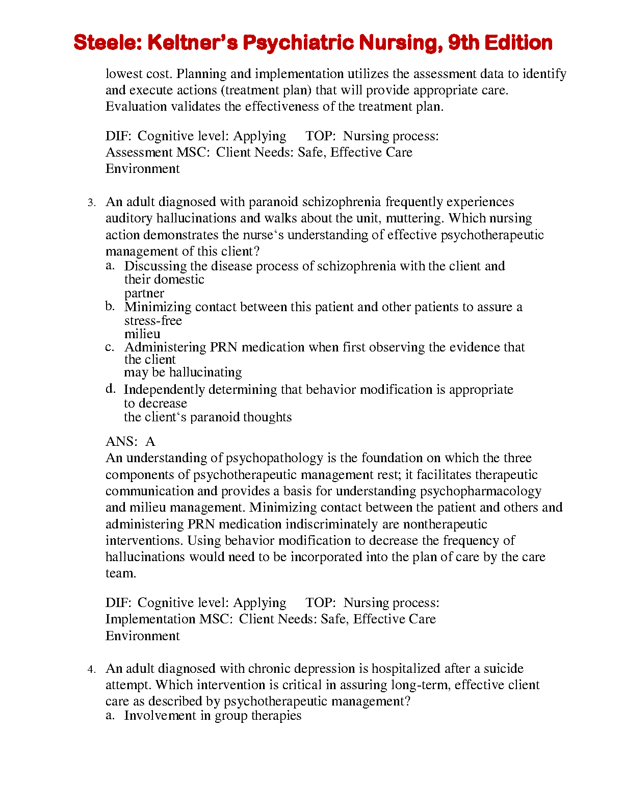 Unlock your full academic potential with the official Test Bank for 'Keltner's Psychiatric Nursing, 9th Edition.' This comprehensive resource, designed to accompany the textbook by Keltner, Steele, and Gethro, is filled with hundreds of practice questions, complete answers, and detailed rationales for every chapter. It's the ultimate study tool to help you master complex psychiatric nursing concepts, prepare effectively for exams, and build the confidence needed to excel in your nursing program.