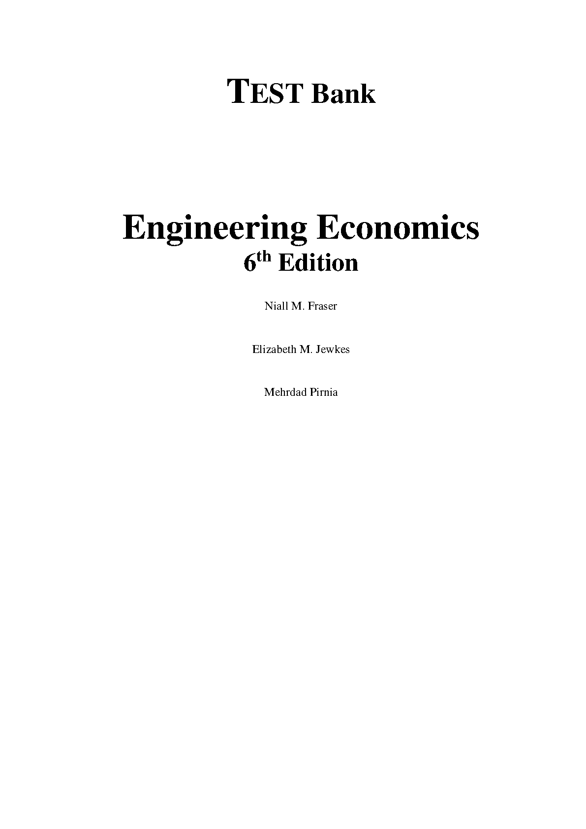 Official Test Bank for Engineering Economics: Financial Decision Making for Engineers, 6th Canadian Edition by Niall M. Fraser, Elizabeth M. Jewkes, Mehrdad Pirnia