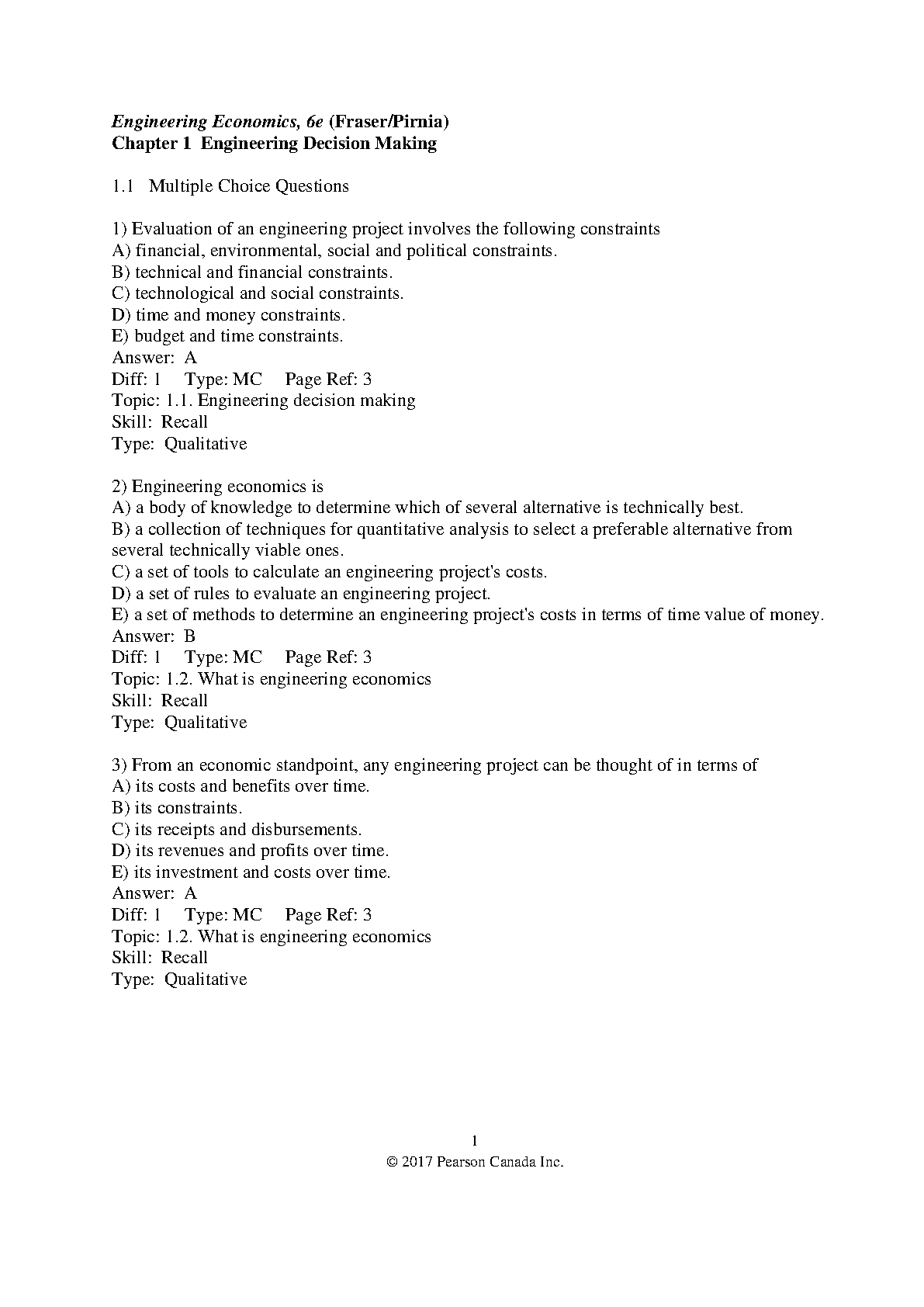 Unlock your academic potential with the official Test Bank for 'Engineering Economics: Financial Decision Making for Engineers, 6th Canadian Edition'. Authored by Fraser, Jewkes, and Pirnia, this comprehensive study tool provides an extensive collection of exam-style questions and verified answers, covering every essential concept from the textbook. It is meticulously designed to help you prepare effectively, master complex financial principles, and confidently ace your exams. Download this invaluable resource today to enhance your understanding and secure top grades in your course.