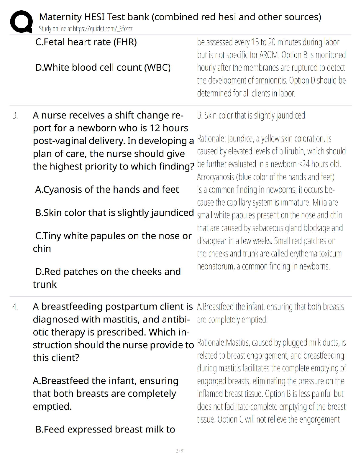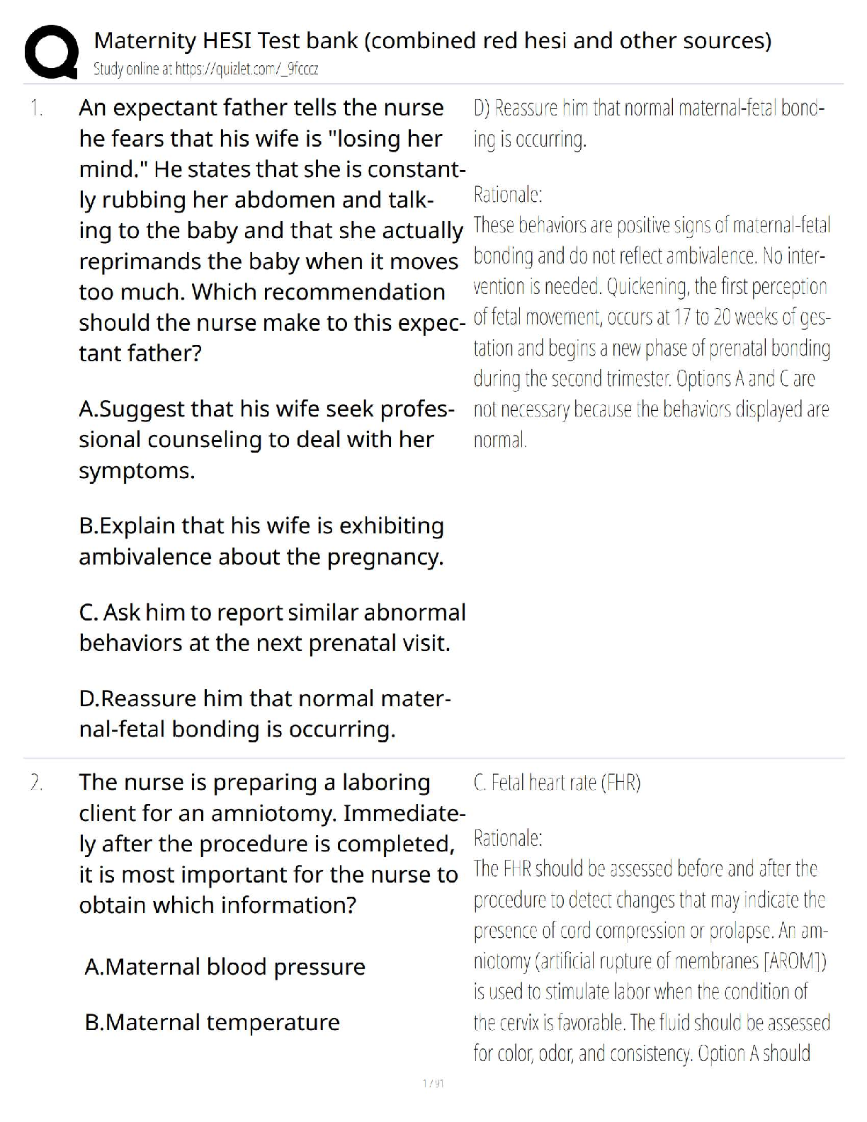 Prepare to excel on your Maternity HESI Exit Exam with our meticulously compiled 2025/2026 test bank. This comprehensive resource features a vast collection of practice questions, complete with detailed answers and in-depth rationales. Each question is designed to mirror the format and difficulty of the actual exam, covering all critical topics in maternity nursing. By mastering these concepts and understanding the reasoning behind each answer, you'll build the confidence and knowledge needed to pass on your first attempt. Start studying smarter with this essential guide to acing your HESI Maternity exam.