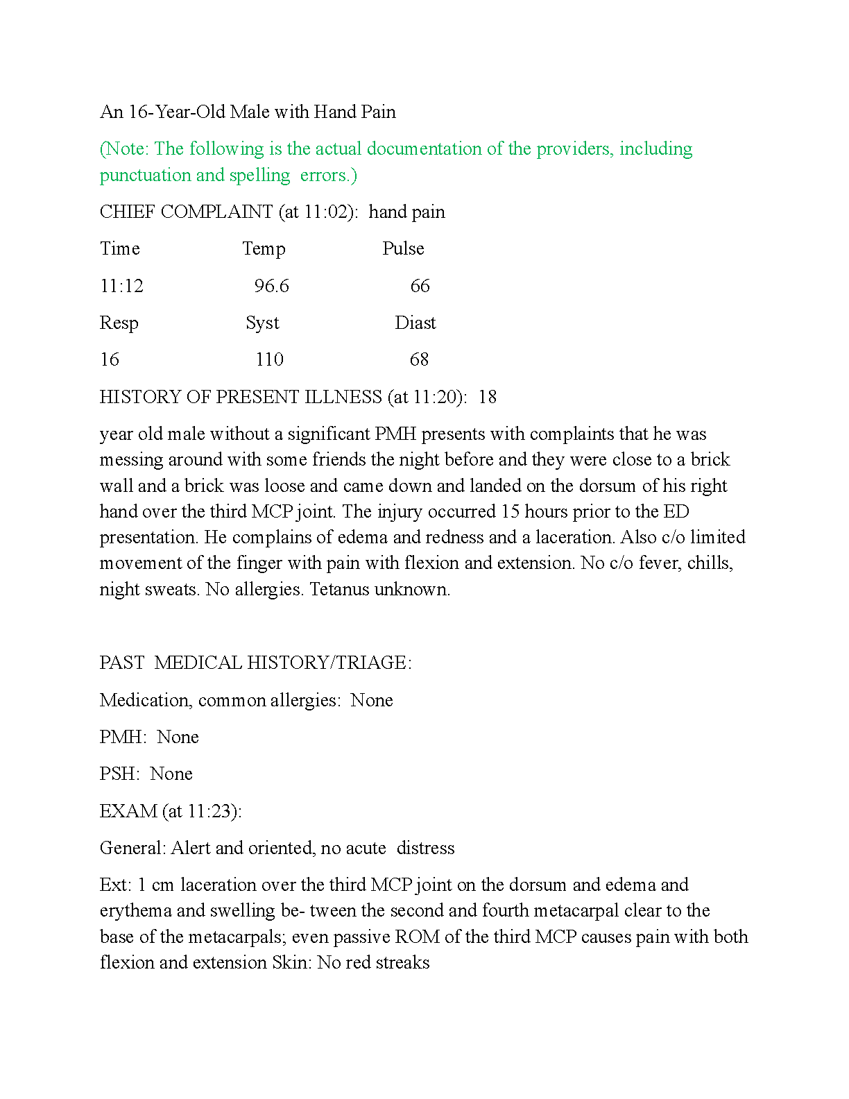 NURS 6531 Walden University i-Human Case Week 9: 16-Year-Old Male with Hand Pain - Advanced Practice Assessment | 2025/2026 Latest Study Guide