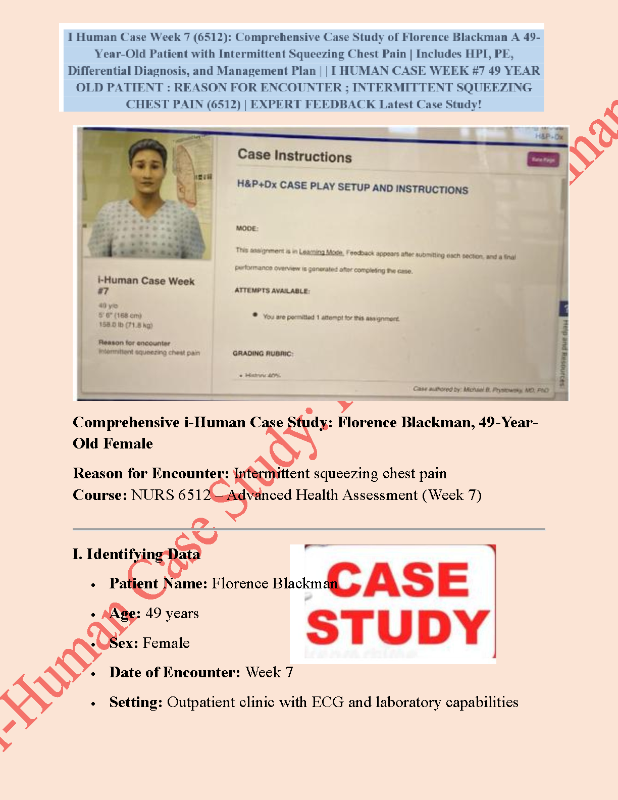 NURS 6512 iHuman: Florence Blackman Chest Pain Case Study (by Michael B. Prystowsky) | 2025/2026 First-Attempt Pass Guide