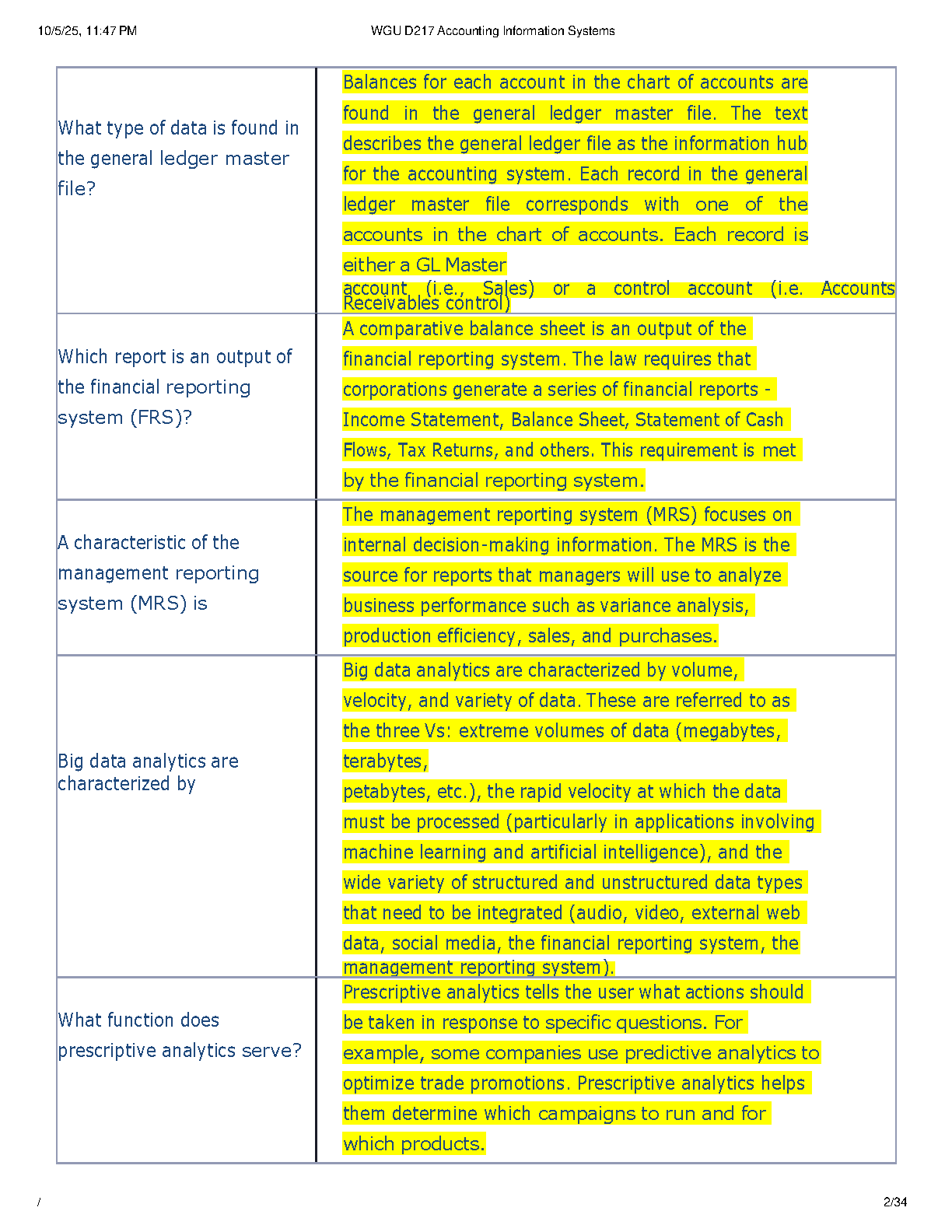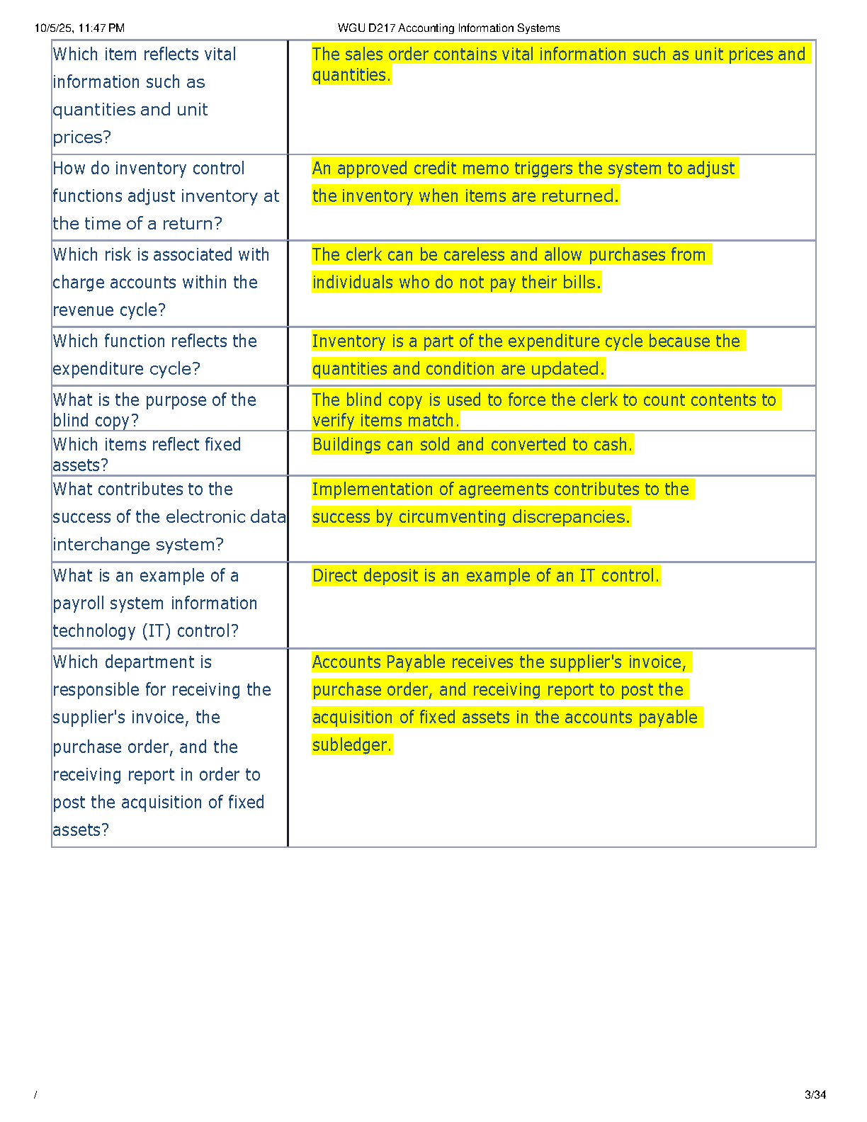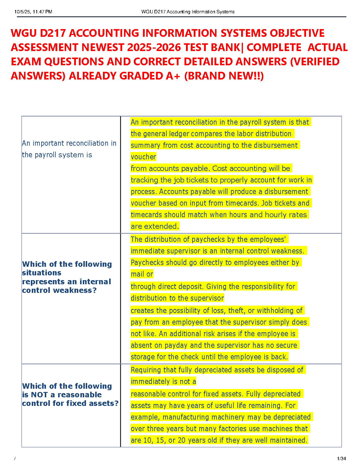 Ace your WGU D217 Accounting Information Systems final exam with our comprehensive test bank for the Objective Assessment. This brand-new 2025-2026 resource is meticulously compiled based on the 15th Edition of 'Accounting Information Systems' by Marshall B. Romney and Paul John Steinbart. Inside, you'll find a complete collection of actual exam questions paired with detailed, verified answers, all designed to guarantee you an A+ grade. Master complex topics like internal controls, payroll systems, and fixed asset management. Stop worrying about resits and start studying smarter. Download now and confidently pass your D217 assessment on your first try!