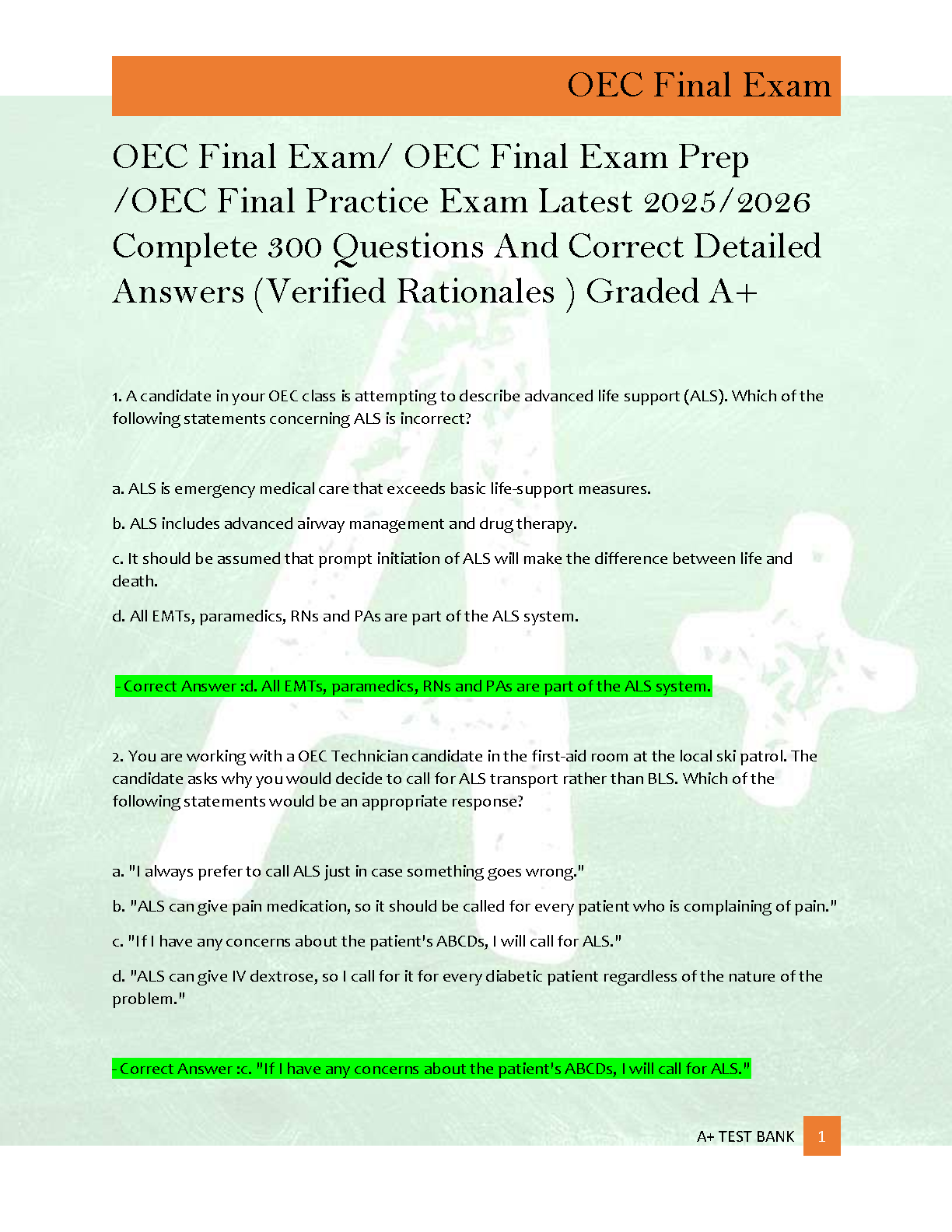 OEC Final Exam Test Bank for Outdoor Emergency Care, 6th Edition by Johe, Isaac & Heath | 300 Questions & Verified Rationales