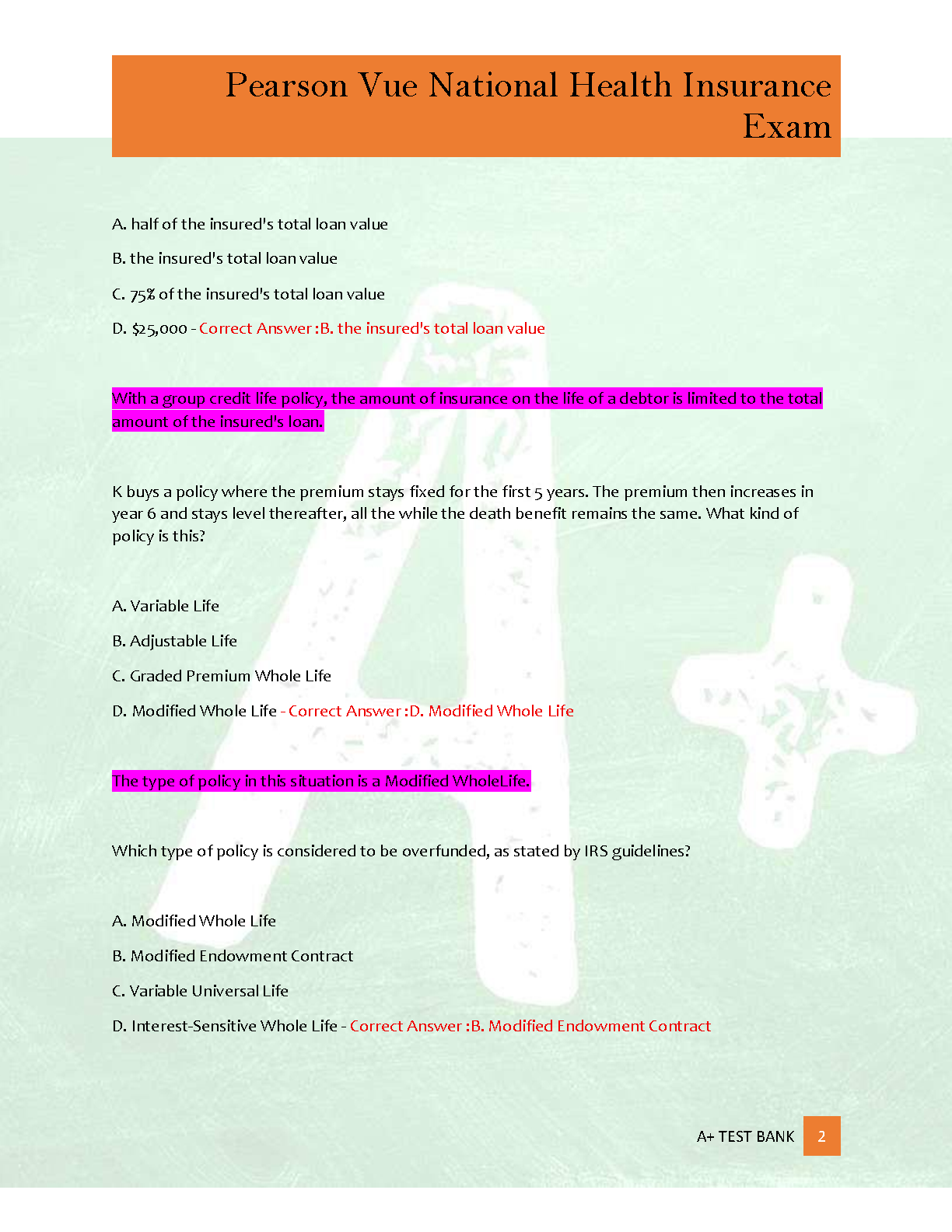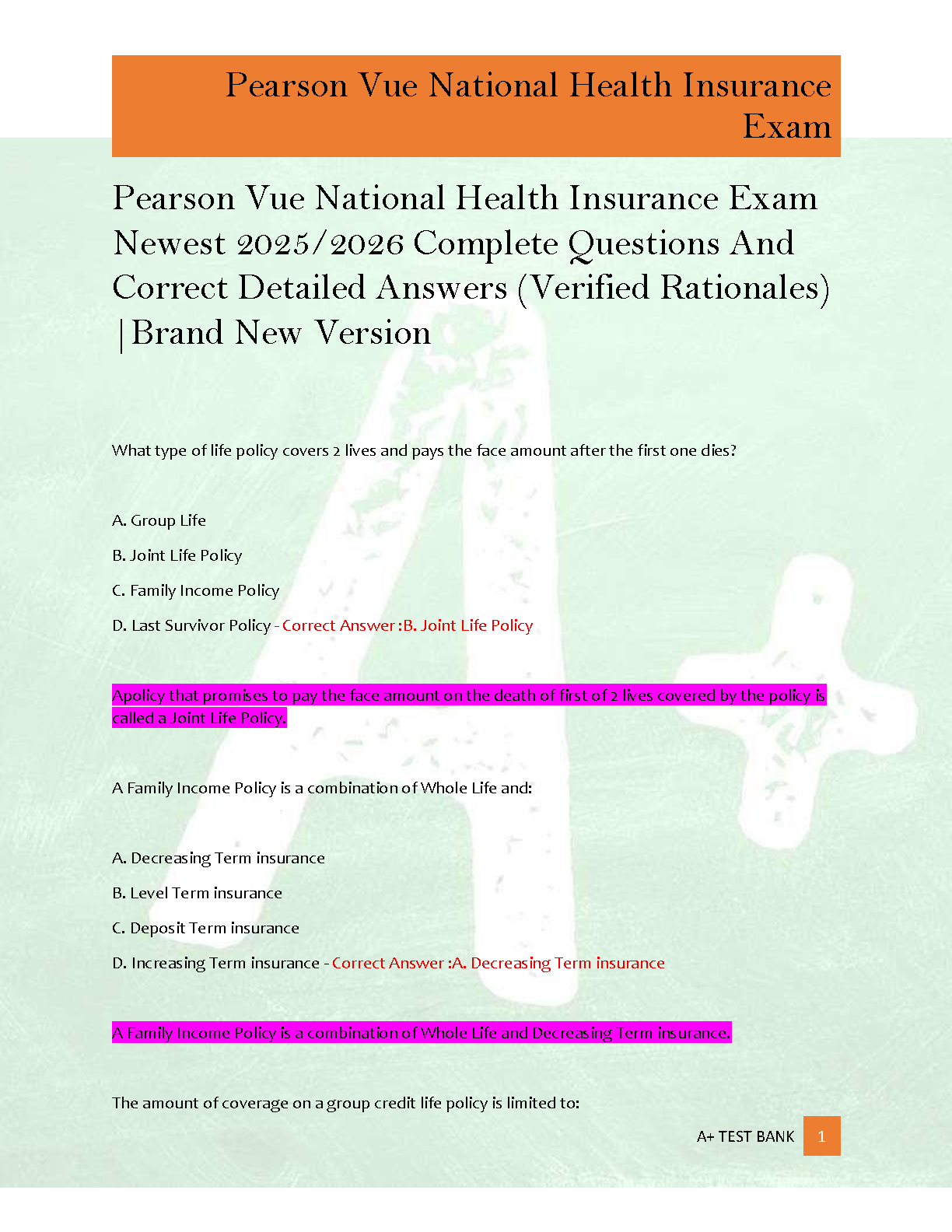 Pearson Vue National Health Insurance Exam Test Bank: Newest 2025/2026 Edition with Verified Questions, Answers, and Rationales