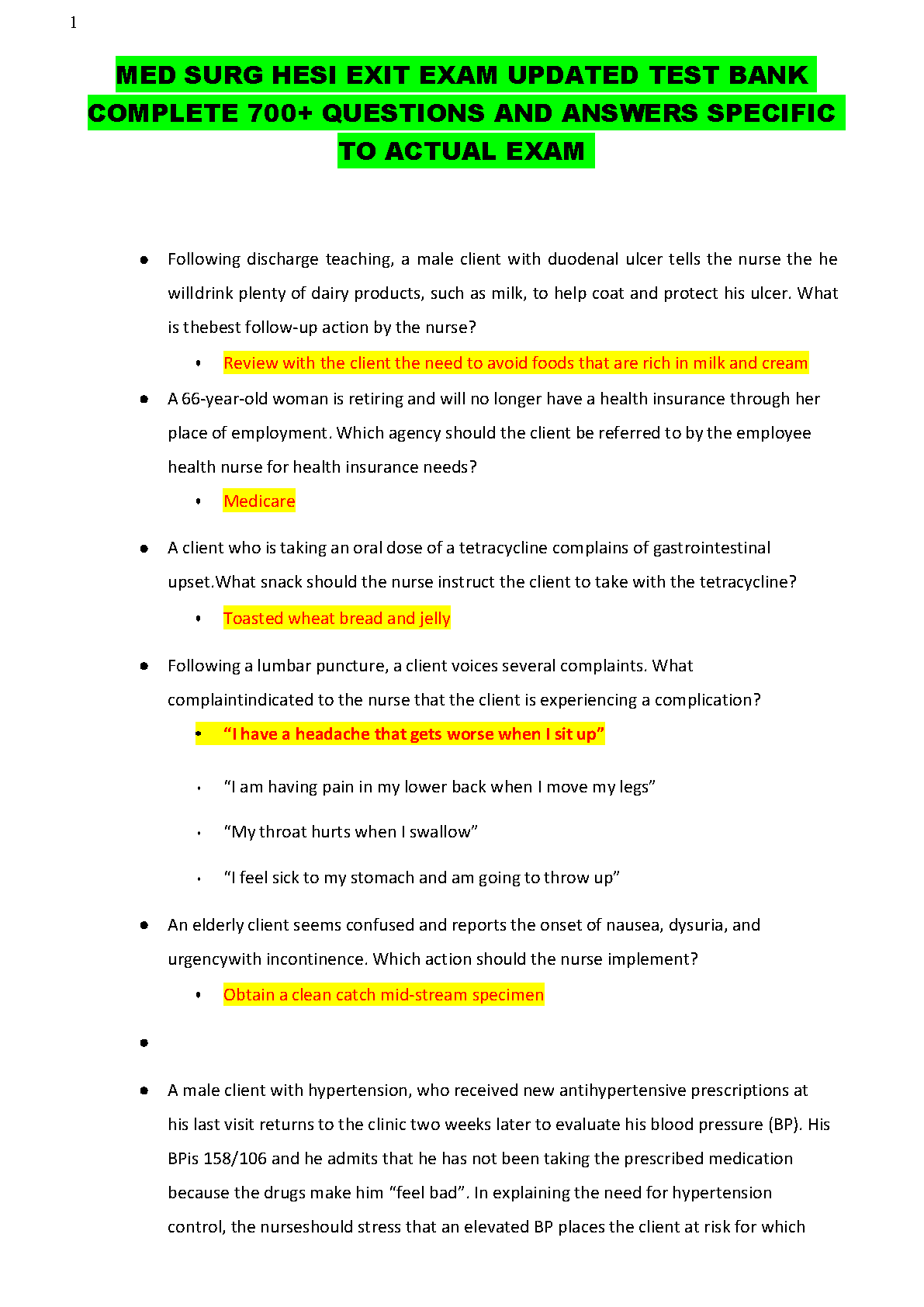 Master the Med Surg HESI Exit Exam with our newly updated 2025/2026 test bank. This comprehensive study guide features over 700 practice questions and detailed, verified answers that are directly aligned with the content of the actual exam. Prepare effectively, build your confidence, and ensure you pass on your very first try, avoiding the stress of resits. This is the ultimate resource for nursing students dedicated to success.