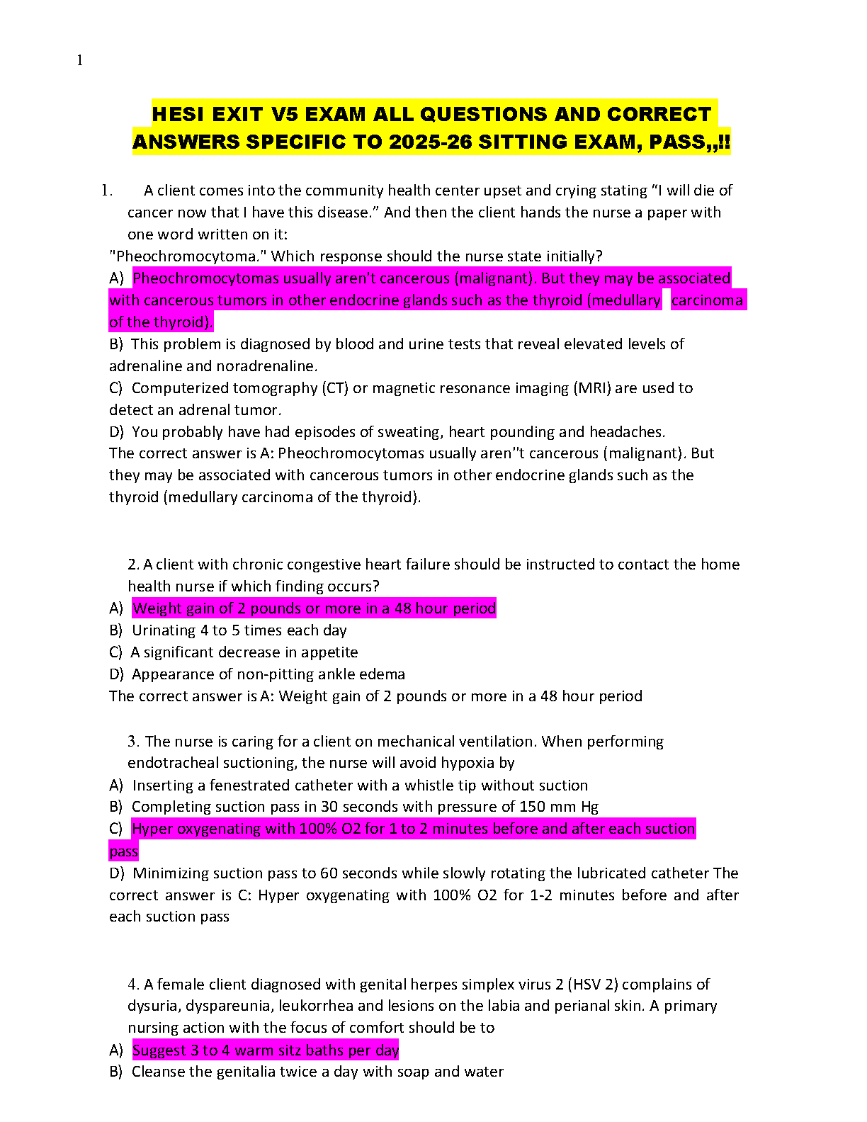 Latest HESI Exit V5 Exam Test Bank 2025-2026: Verified Questions & Answers to Guarantee a First-Time Pass