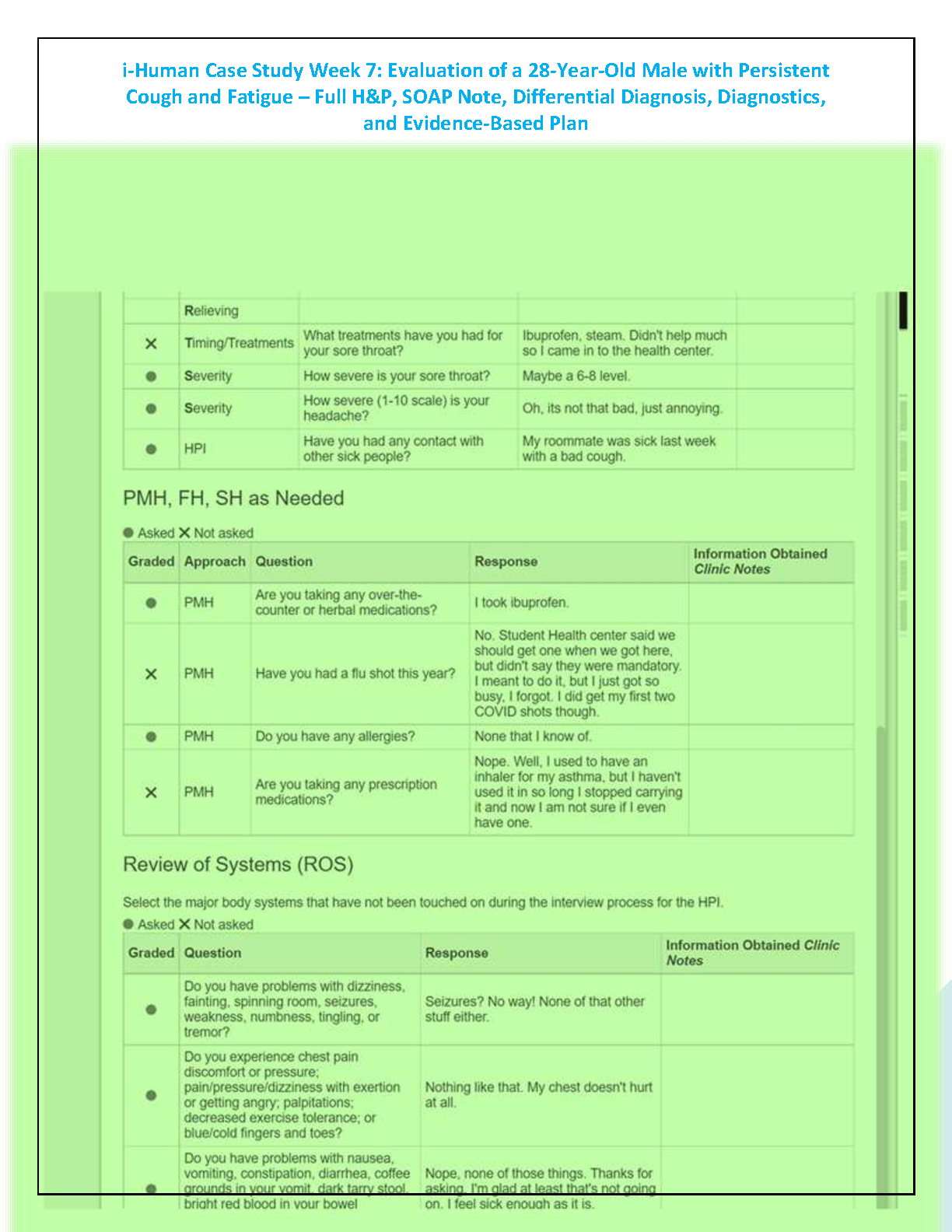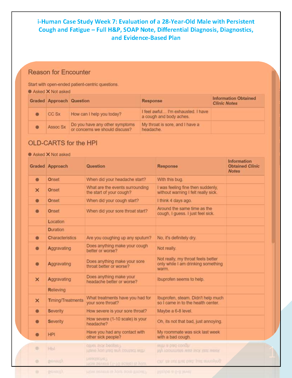 i-Human Case Study Week 7: 28-Year-Old Male with Cough and Fatigue | Verified H&P, SOAP Note & Diagnosis Guide (2025/2026 Edition for First-Attempt Pass)