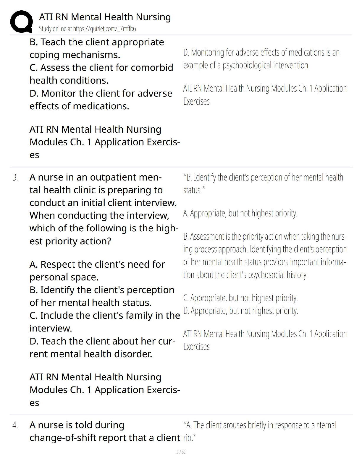 ATI RN Mental Health Nursing Edition 11.0 Test Bank by Assessment Technologies Institute
