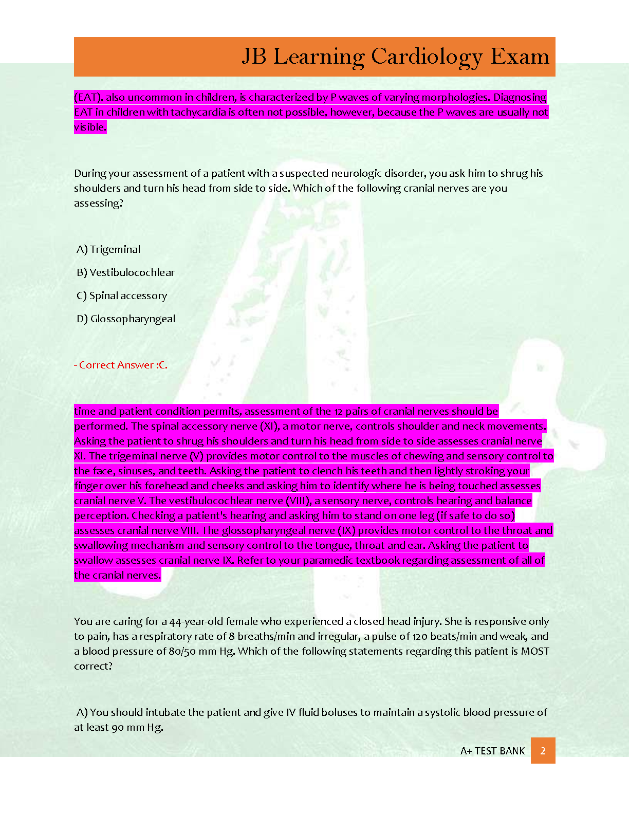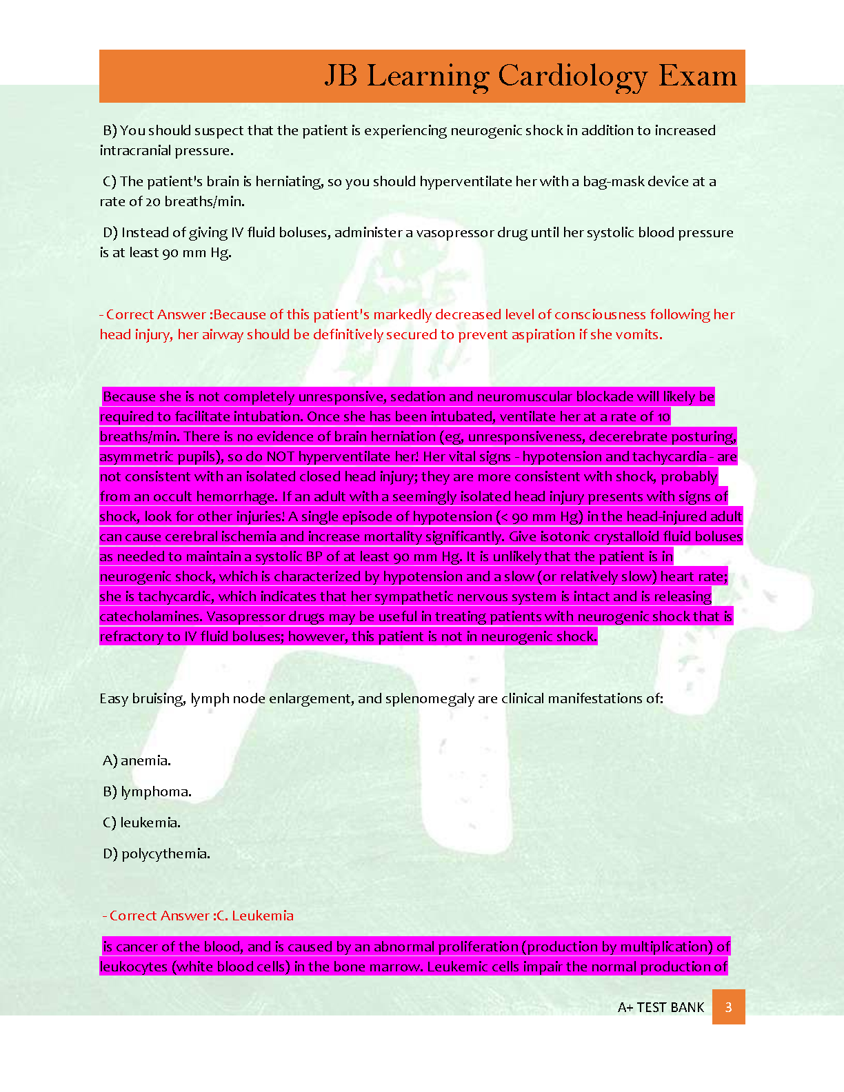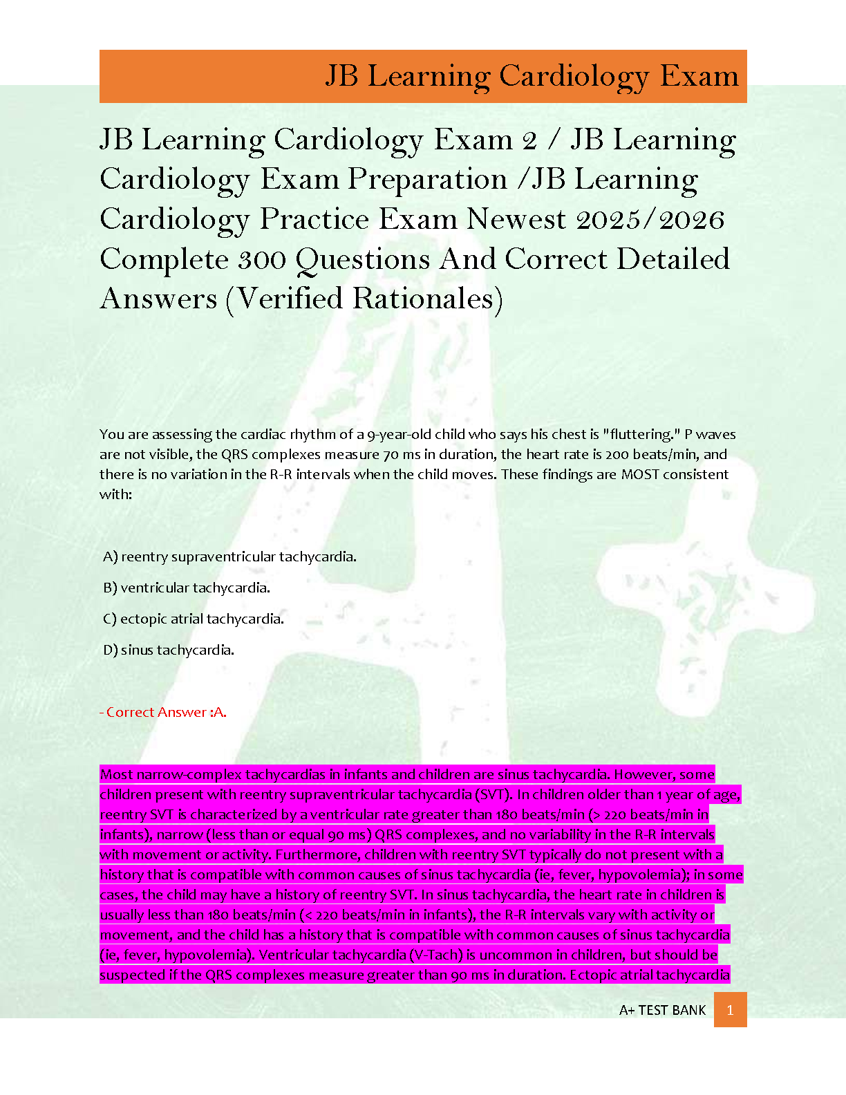 Ace your upcoming cardiology exam with the latest 2025/2026 edition of the JB Learning Cardiology Exam 2 Test Bank. This comprehensive study guide features a complete collection of 300 practice questions, each accompanied by correct answers and thoroughly verified, detailed rationales. Designed to cover all essential topics, this resource is your key to understanding complex concepts and preparing effectively to master the material needed to excel in your cardiology assessment.