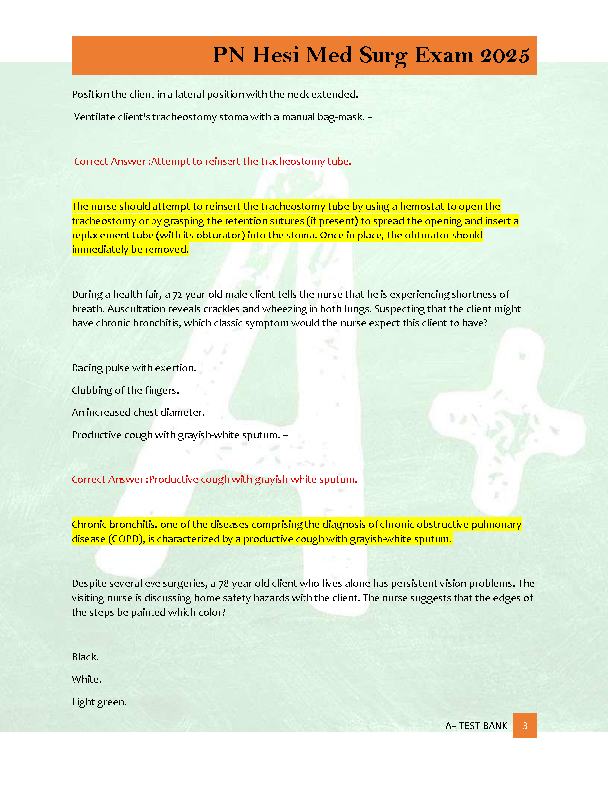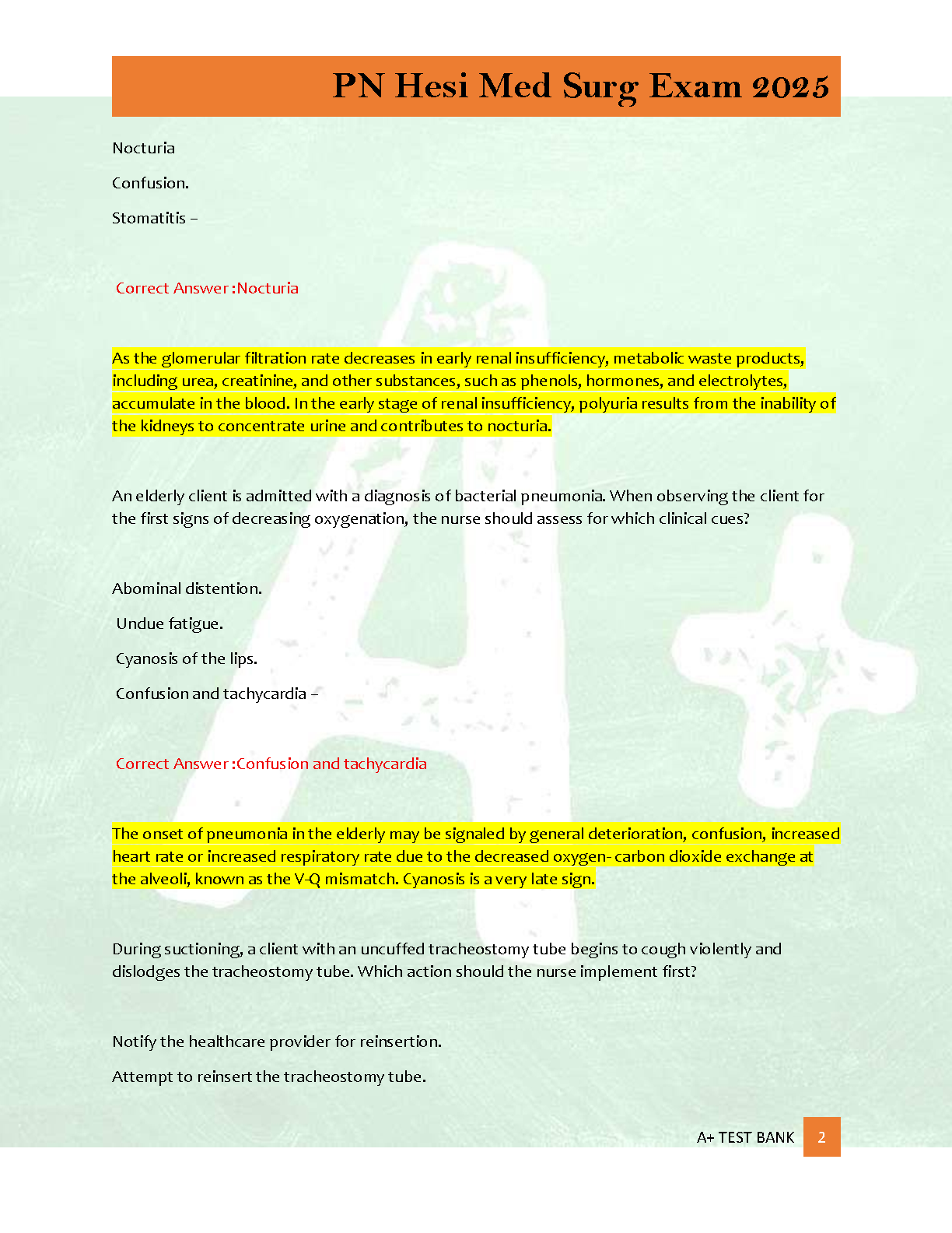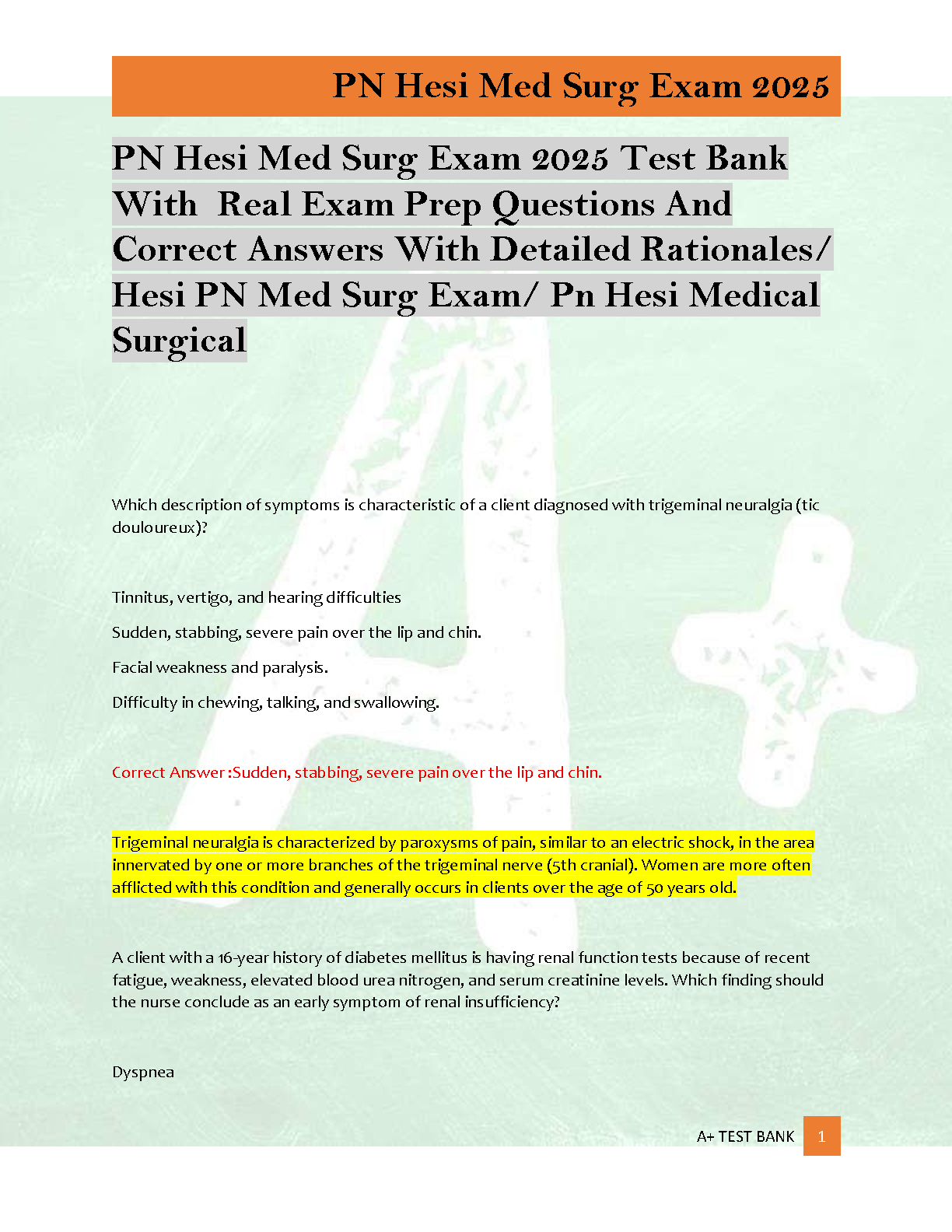 HESI PN Med Surg 2025 Exam Test Bank: Comprehensive Questions, Answers, and Detailed Rationales for First-Attempt Success
