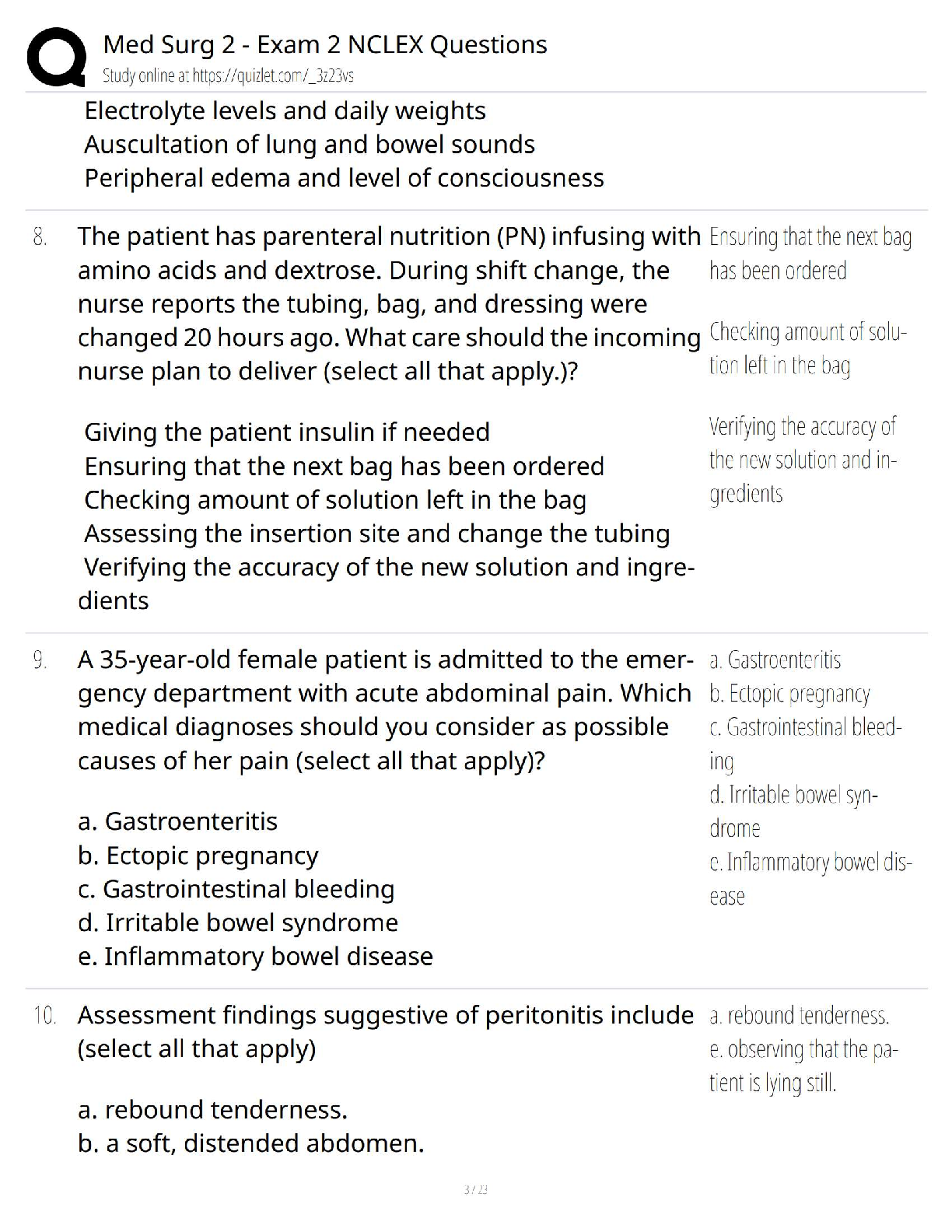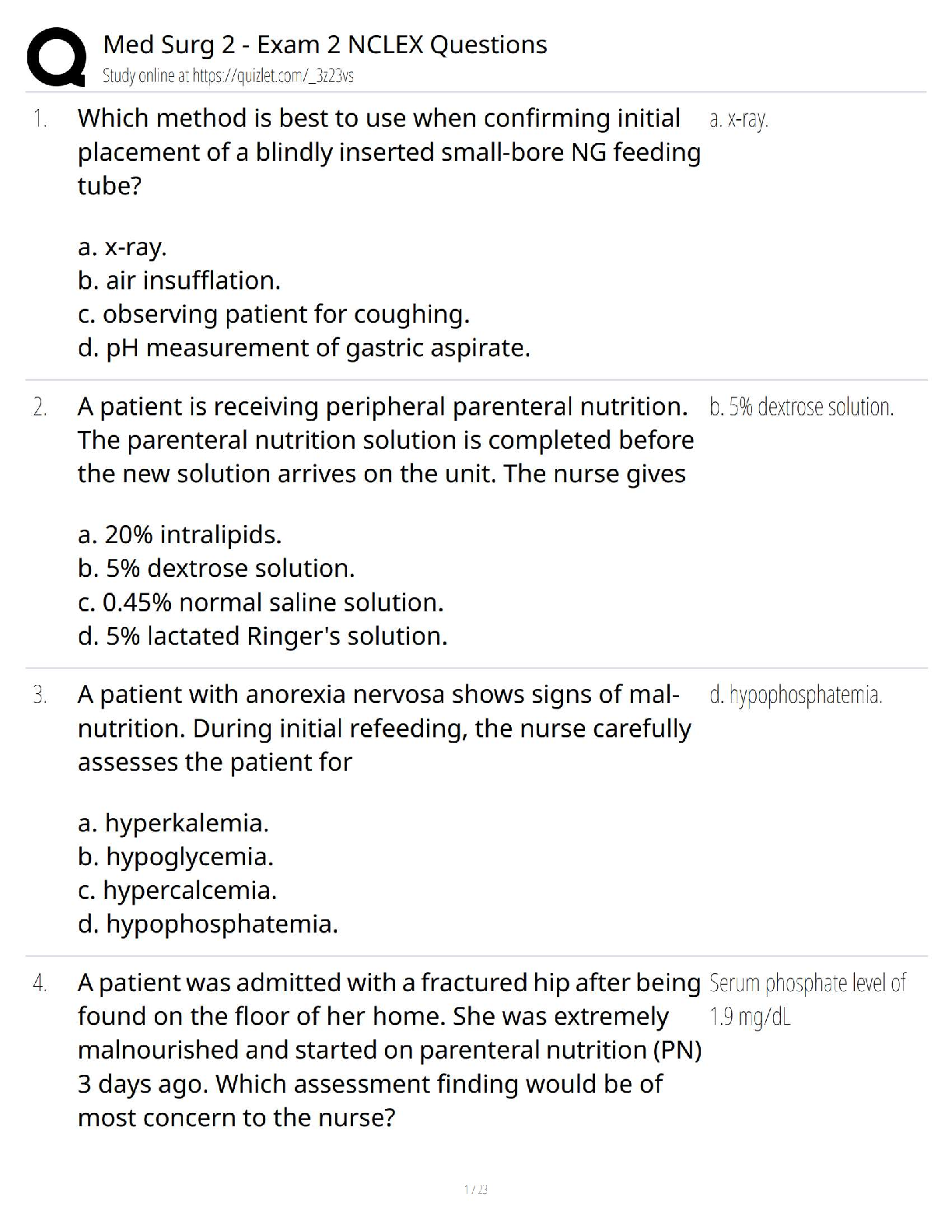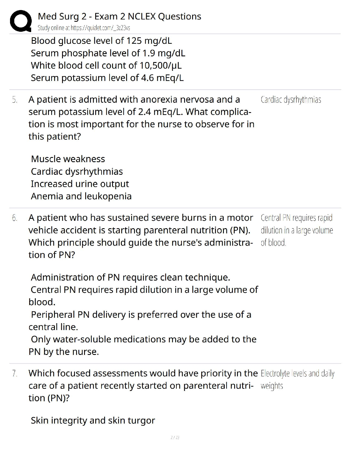 Master your Med Surg 2 course with this comprehensive Test Bank for the 10th Edition of Medical-Surgical Nursing by Ignatavicius, Workman, Rebar, and Heimgartner. This resource is packed with NCLEX-style questions and answers specifically tailored for Exam 2, covering essential topics like parenteral nutrition, NG tube placement confirmation, refeeding syndrome, and critical electrolyte imbalances. This invaluable tool will help you test your knowledge, identify areas for improvement, and build the confidence needed to excel in your exams and pass the NCLEX.