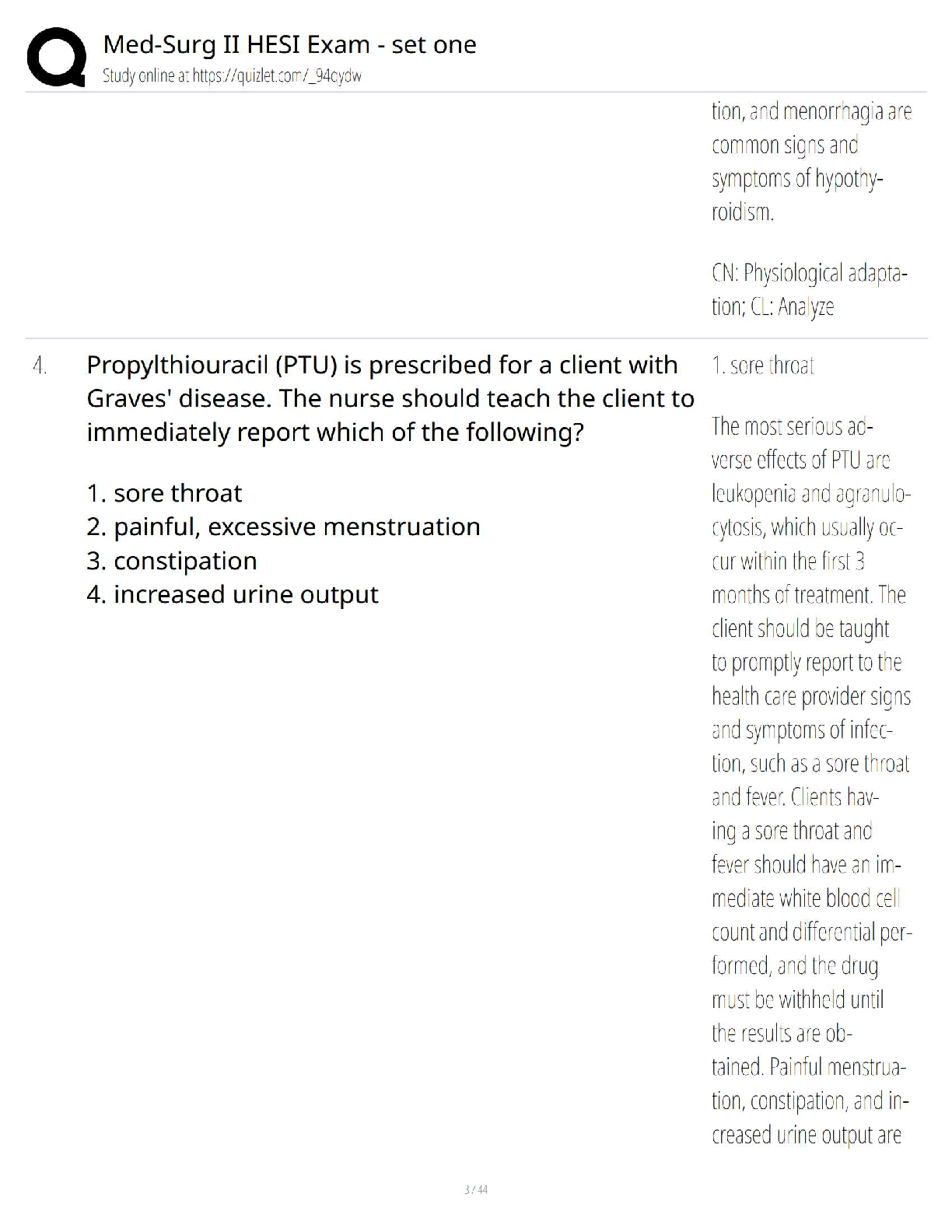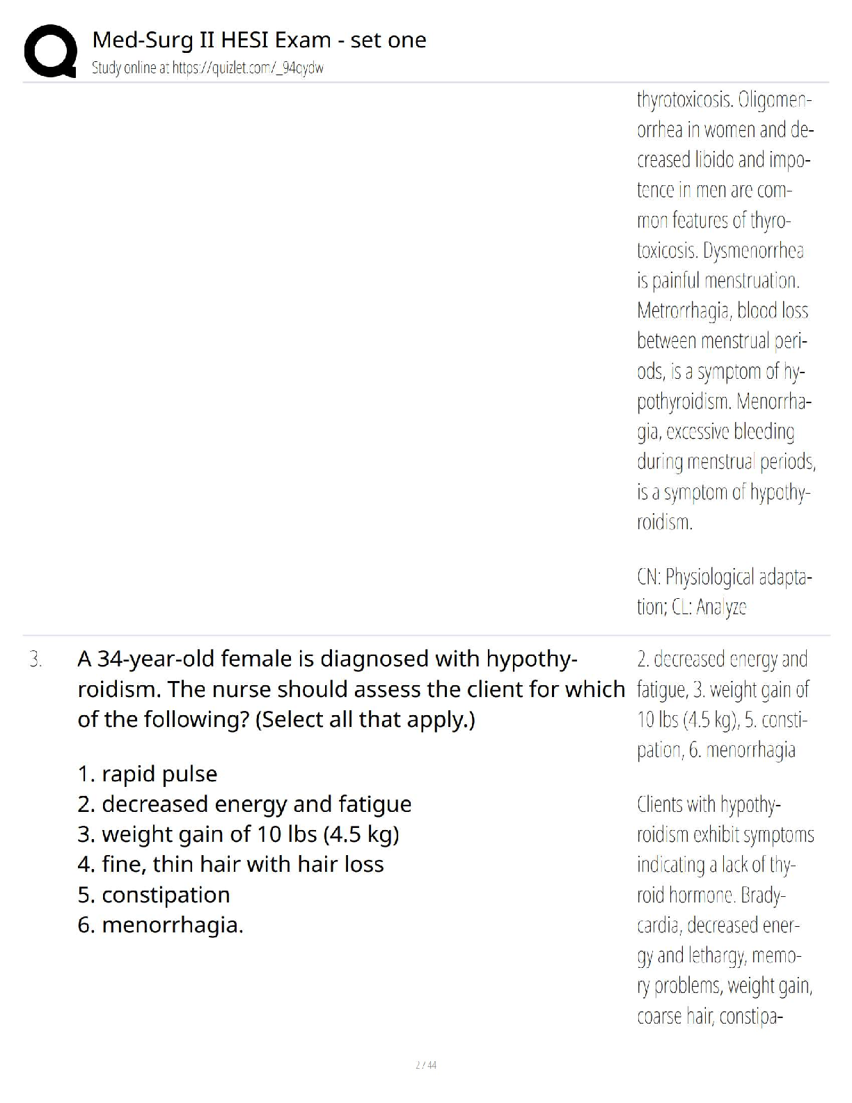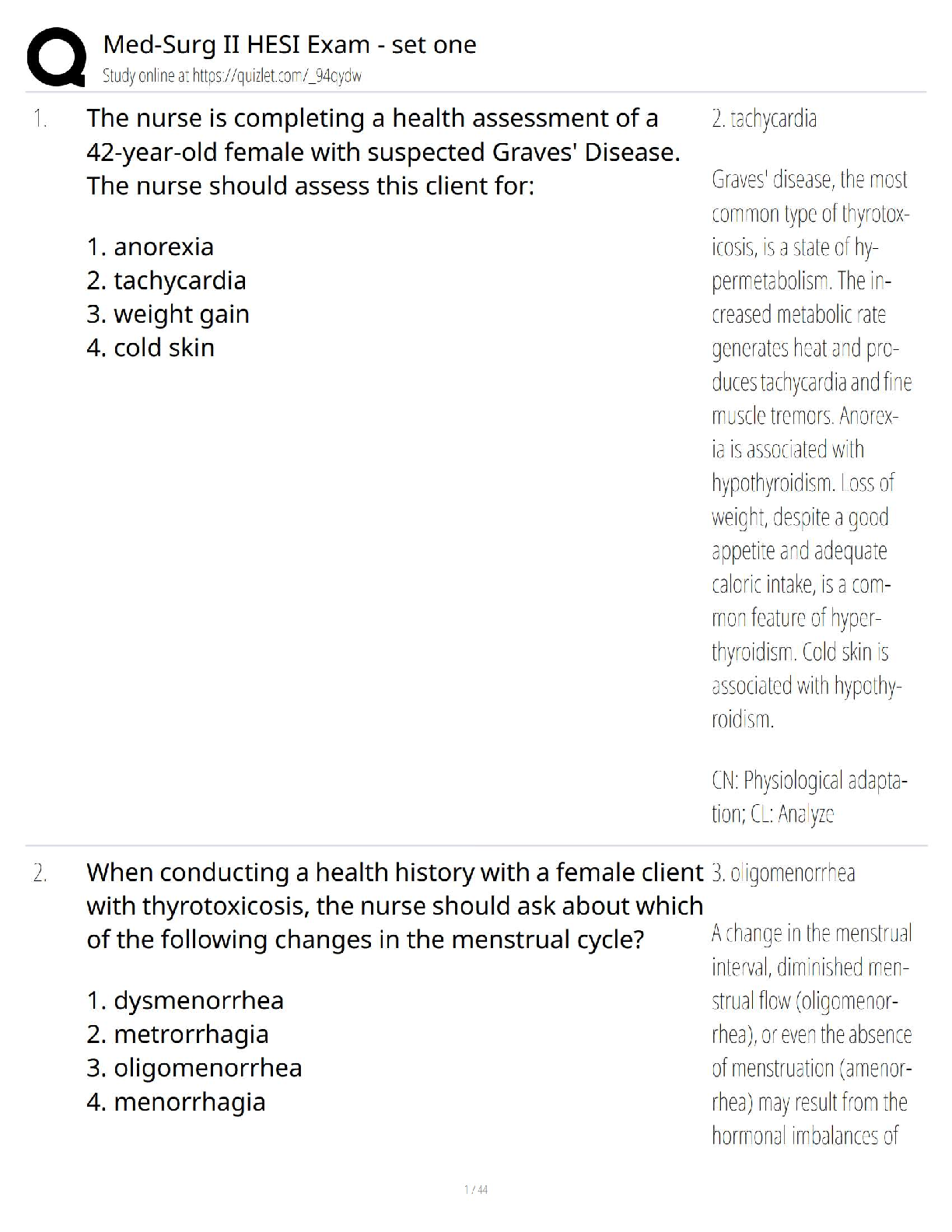 Get ready to excel in your nursing studies with our latest 2025/2026 test bank for the Med-Surg II HESI Exam. This comprehensive resource is packed with a wide range of multiple-choice questions that mirror the actual exam format. Each question comes with a detailed, easy-to-understand rationale, explaining not only the correct answer but also the reasoning behind it. This study guide is expertly designed to deepen your understanding of key medical-surgical nursing concepts, from endocrine disorders like Graves' Disease to other critical patient care scenarios. Boost your confidence and ensure you pass on your first try with these verified practice questions.