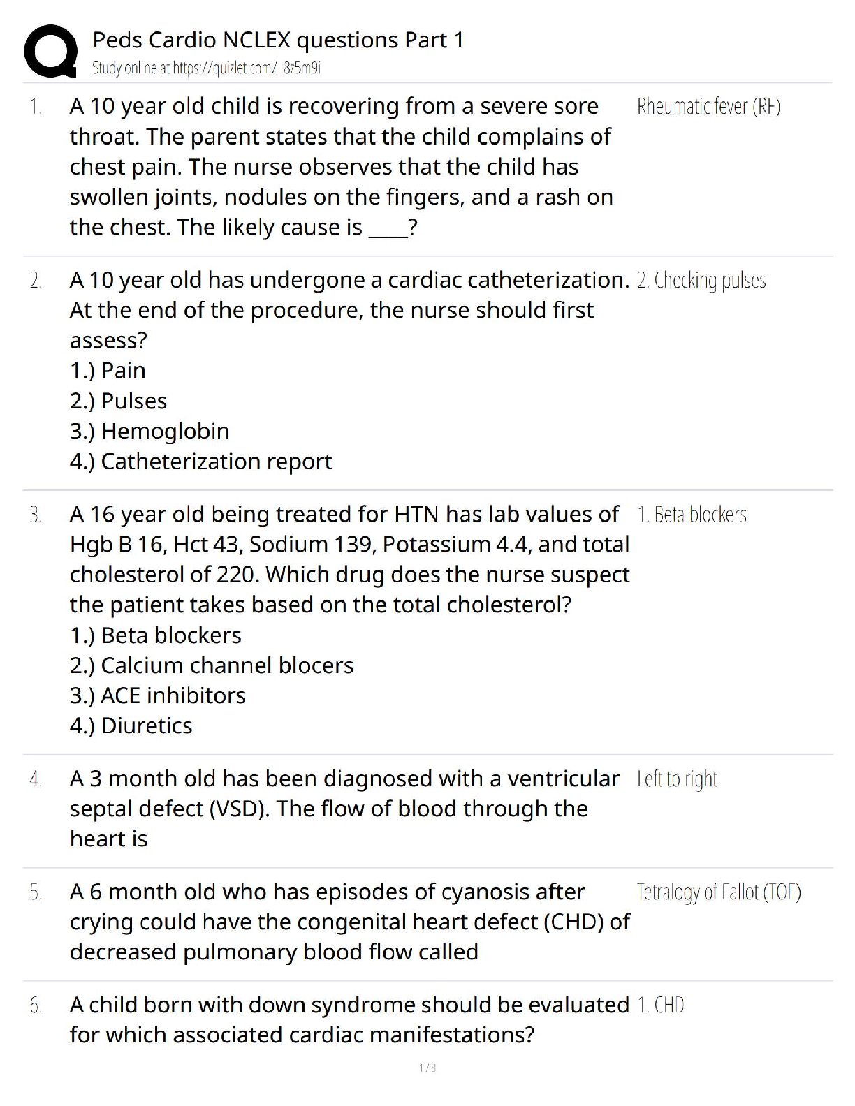 Ace the NCLEX with our comprehensive Pediatric Cardiology Test Bank, fully updated for the 2025/2026 exam cycle. This essential study guide features a curated set of practice questions and detailed answers covering critical Peds Cardio topics. From congenital heart defects like VSD and Tetralogy of Fallot to conditions such as Rheumatic Fever, this resource is meticulously designed to sharpen your clinical judgment and ensure you're fully prepared. Stop worrying about resits and gain the confidence you need to pass the NCLEX on your first attempt. Download now for immediate access to your key to nursing success!