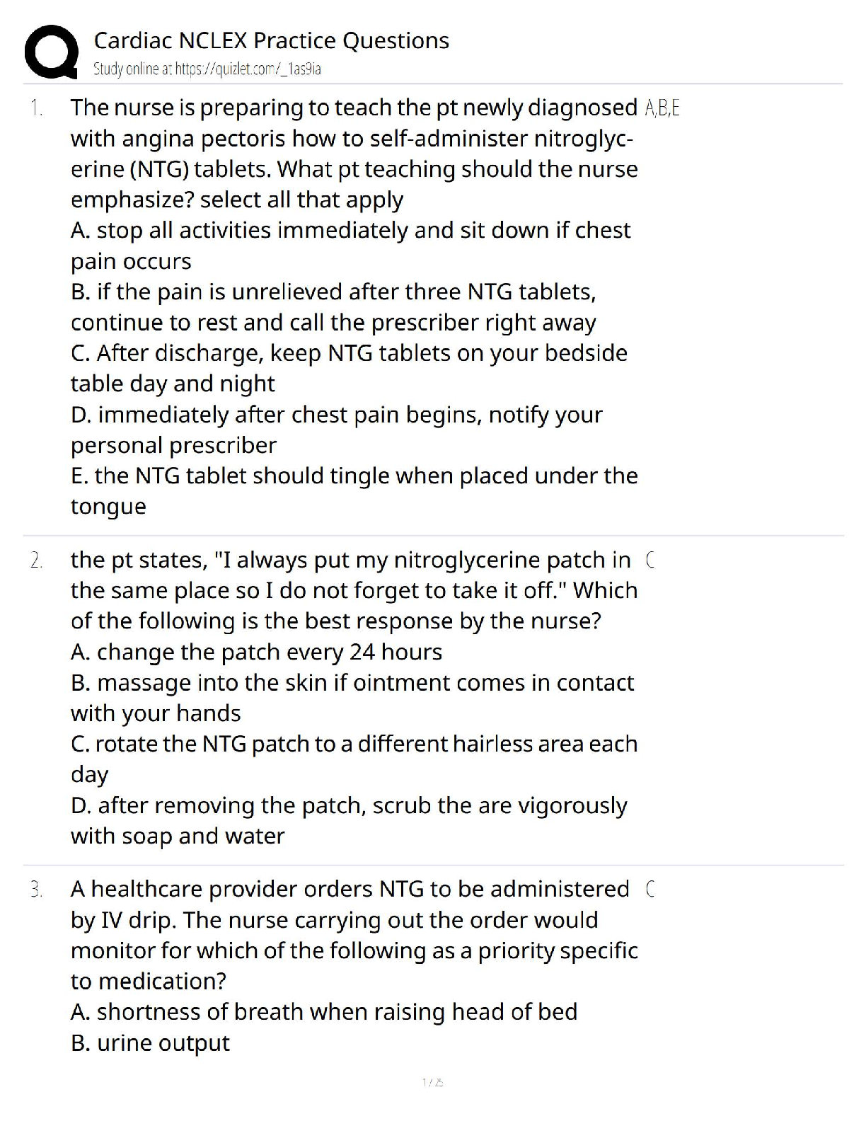 Elevate your NCLEX preparation with our latest collection of Cardiac Nursing practice questions, fully updated for the 2025/2026 academic year. This essential study guide provides a detailed set of questions and verified answers, covering critical topics like angina pectoris, nitroglycerine administration, and patient teaching. Designed to simulate the real exam environment, this resource will sharpen your clinical reasoning and boost your confidence. Ace your NCLEX on the first try and avoid costly resits by mastering the cardiac content that matters most.