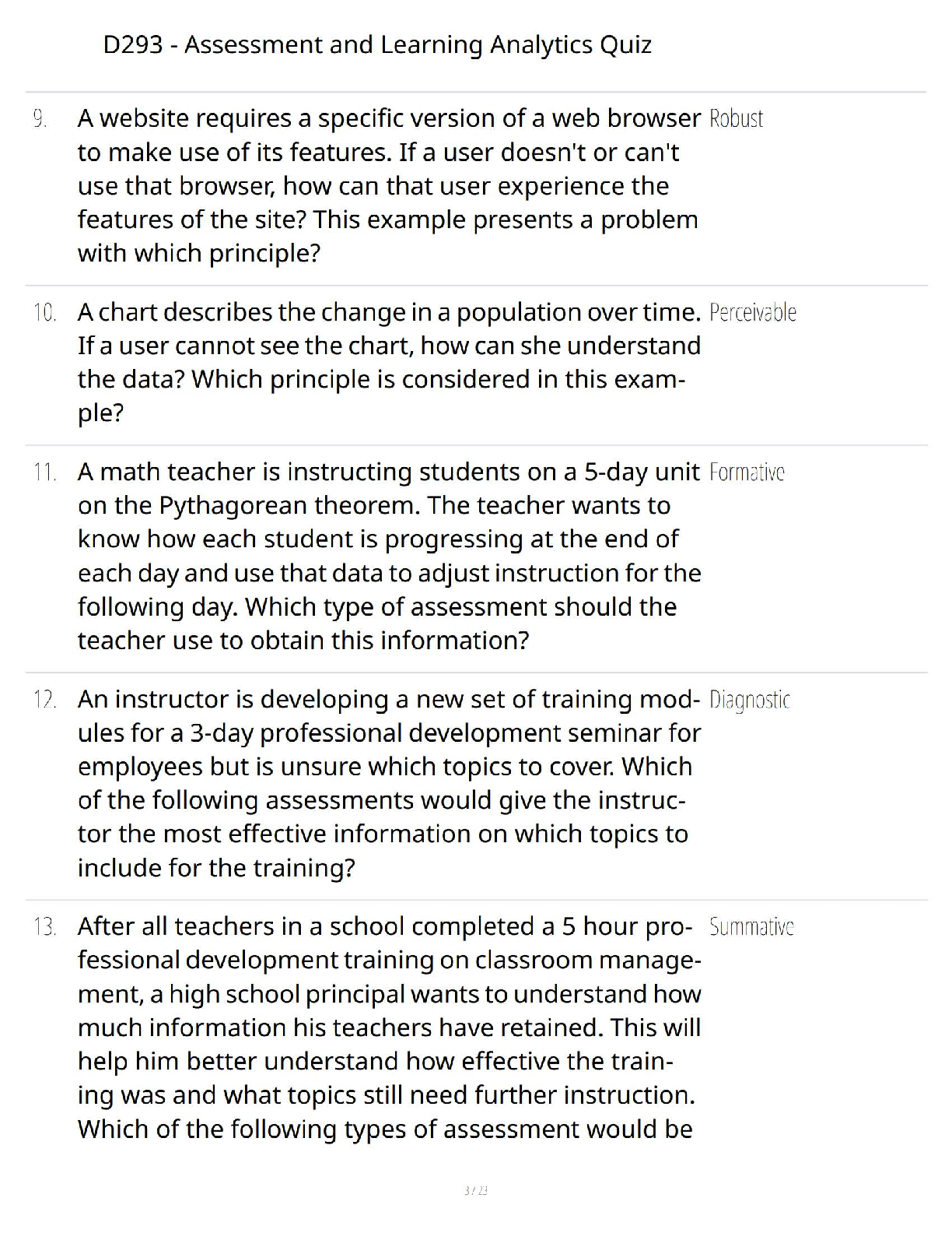 D293 Assessment and Learning Analytics - Latest Test Bank with Quiz Answers & Explanations (2025/2026 WGU Guide)