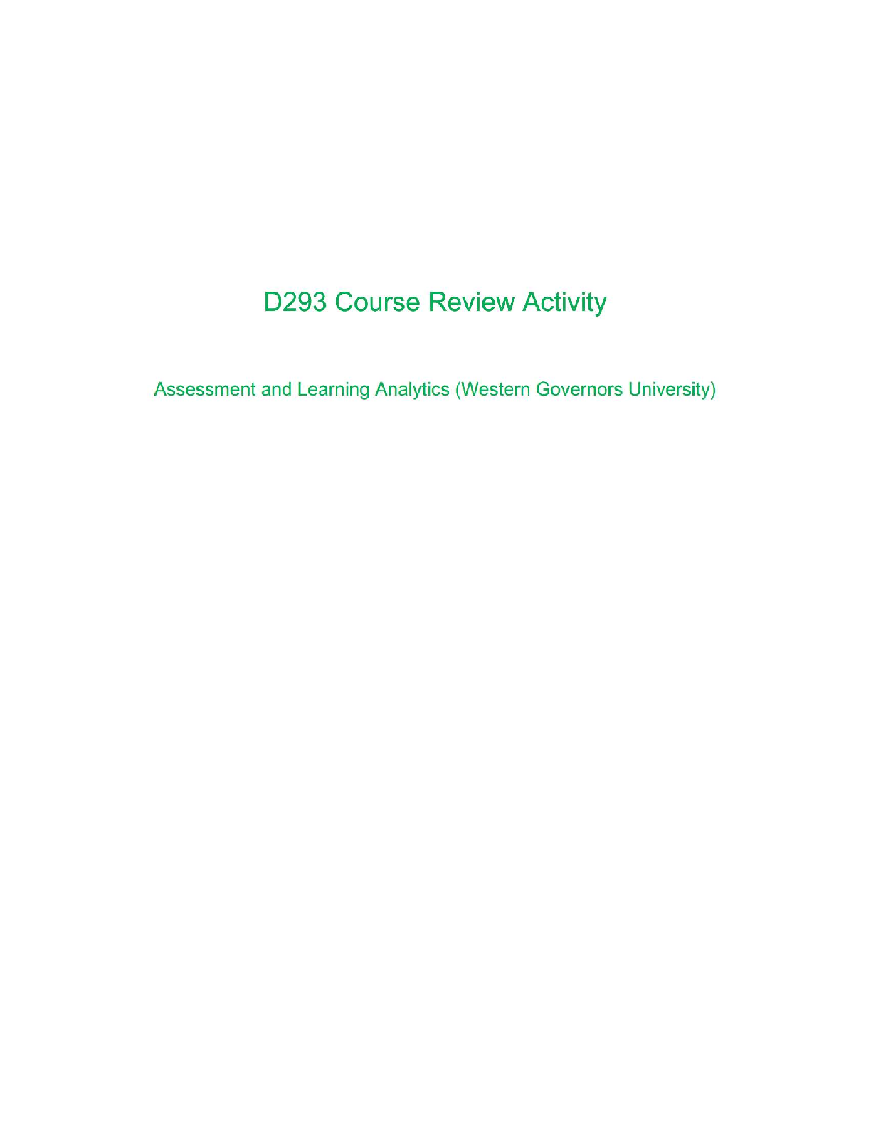 Master the WGU D293 Assessment and Learning Analytics course with our updated 2025/2026 Course Review Activity. This comprehensive exam elaboration is your key to success, providing detailed insights and focused content to help you ace your assessment on the first attempt. Say goodbye to exam stress and the possibility of resits. This study guide is expertly crafted to align with the latest curriculum, ensuring you are fully prepared to demonstrate your knowledge and pass with confidence.