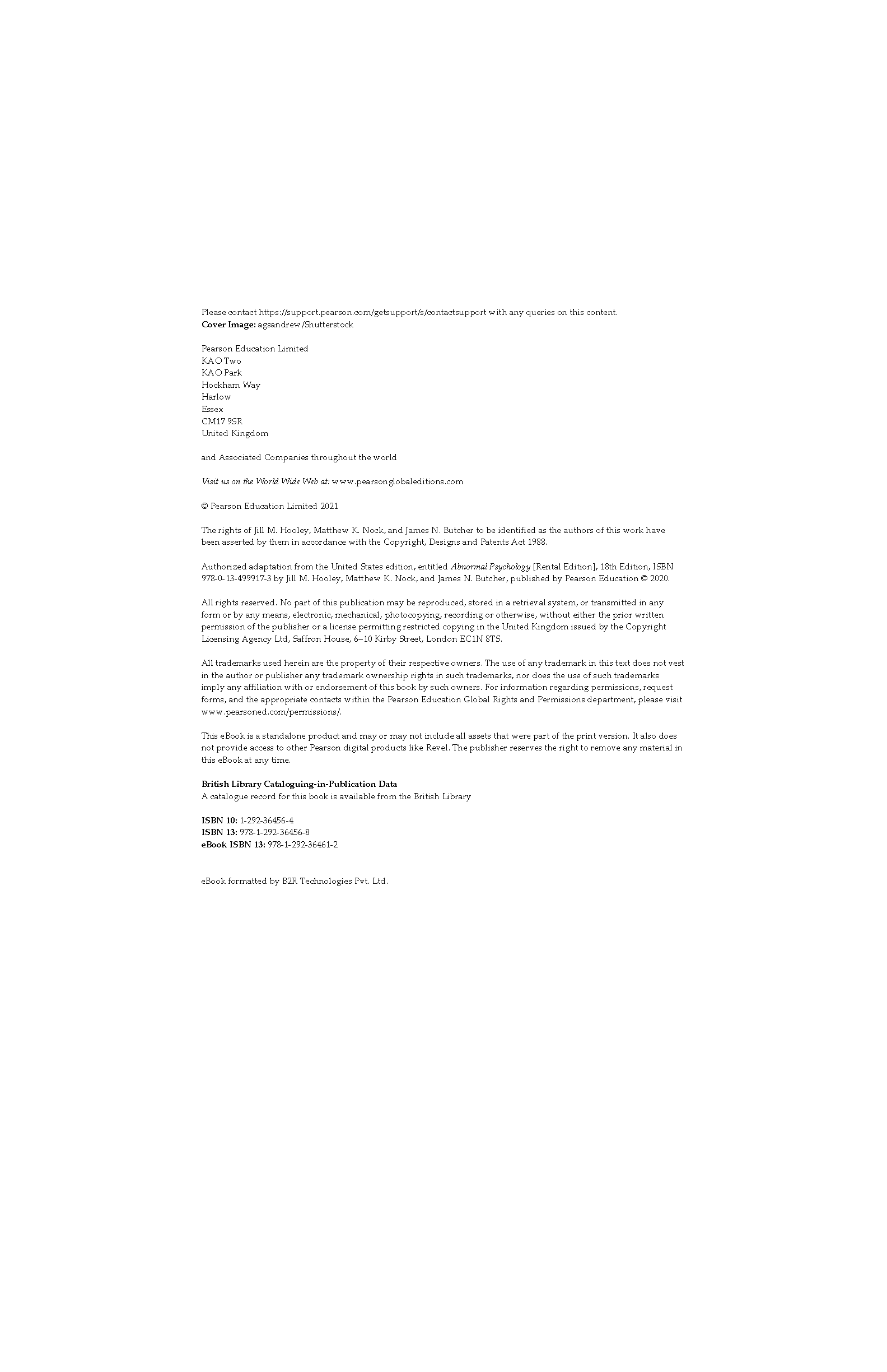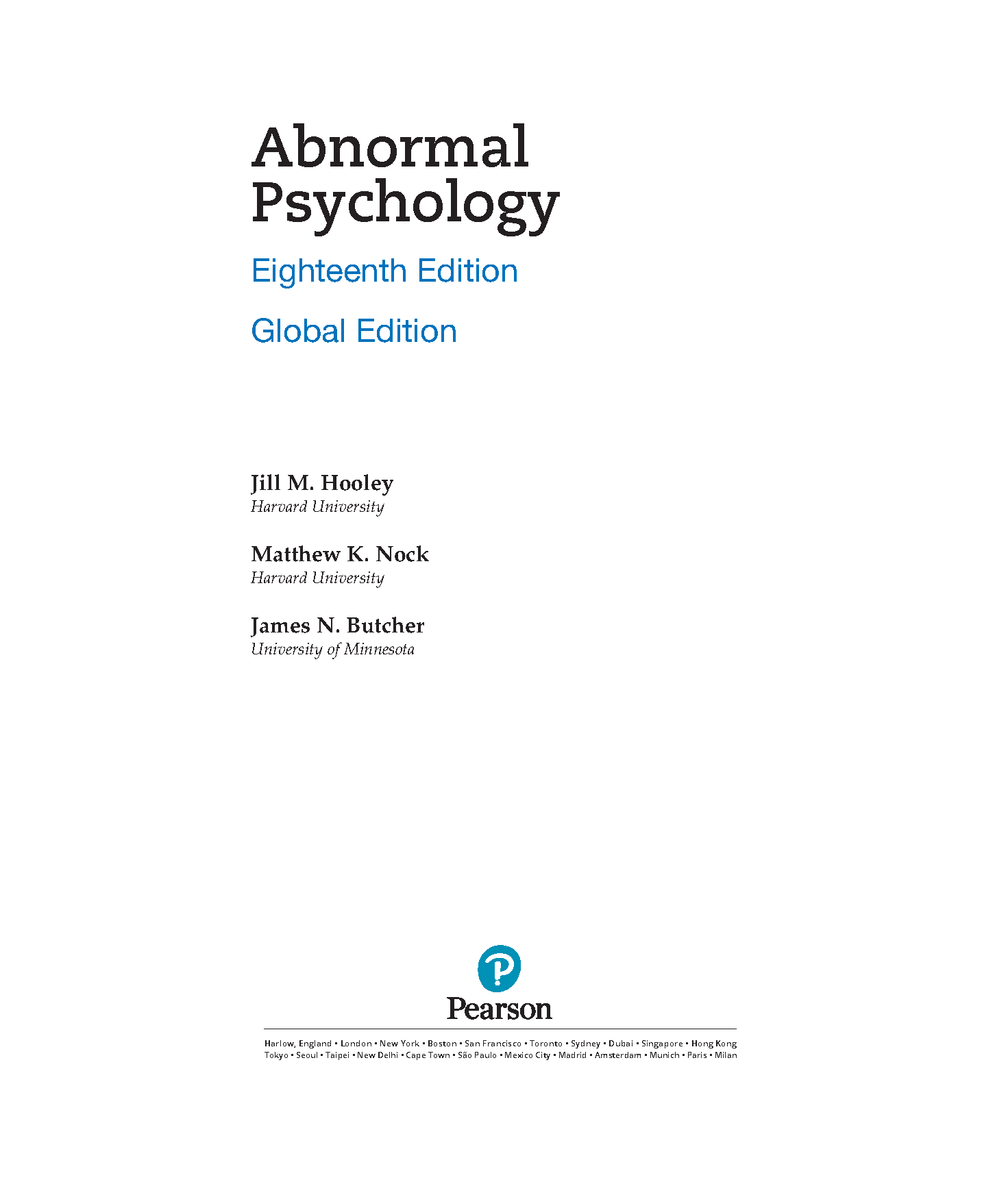 Test Bank for Abnormal Psychology, 18th Global Edition by Jill M. Hooley, Matthew K. Nock, James N. Butcher & Susan M. Mineka