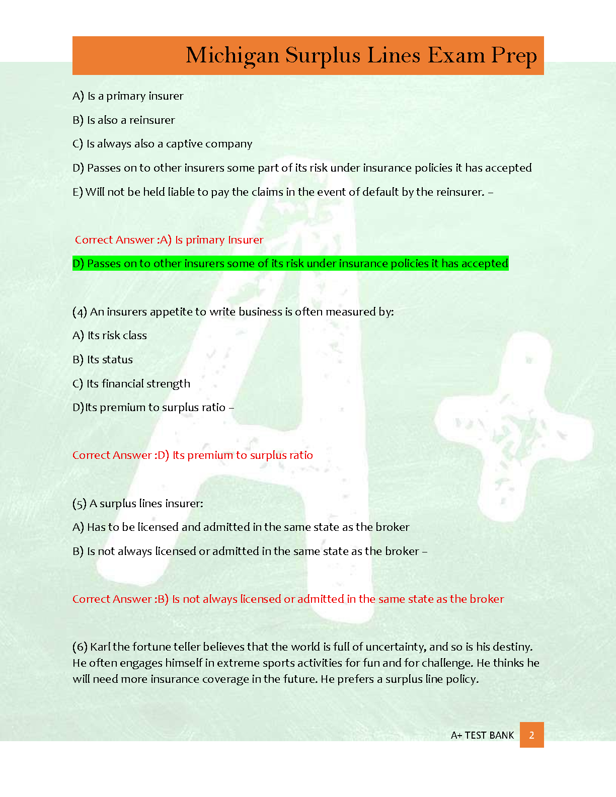 Prepare to ace your Michigan Surplus Lines Insurance exam with this comprehensive test bank! This study guide features 280 recently updated practice questions, each paired with a detailed rationale to ensure you fully understand the concepts. Designed for guaranteed success, our A+ graded material covers all essential topics, helping you master the content and pass your certification on the very first try. Stop worrying about resits and start your career with confidence using this essential exam prep tool.