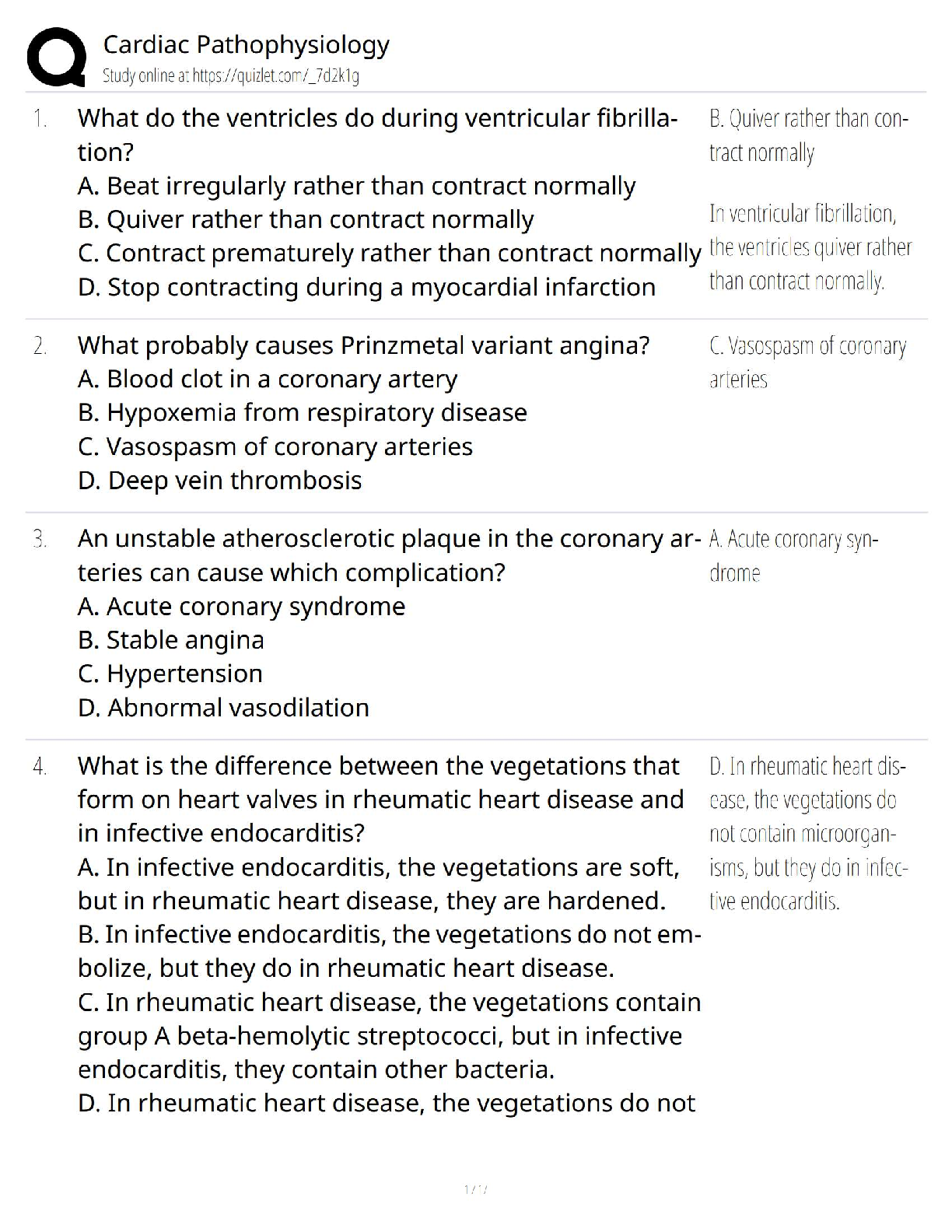 Unlock exam success with the official test bank for the Cardiac Pathophysiology chapter from the 10th Edition of 'Pathophysiology: The Biologic Basis for Disease in Adults and Children' by Kathryn L. McCance and Sue E. Huether. This study guide features a complete set of multiple-choice questions and detailed, verified answers covering essential topics like ventricular fibrillation, angina, acute coronary syndrome, and endocarditis. Designed to help nursing and medical students master complex concepts and pass their exams on the first try. Get immediate access to the study materials that will boost your grades and deepen your understanding of cardiovascular diseases.