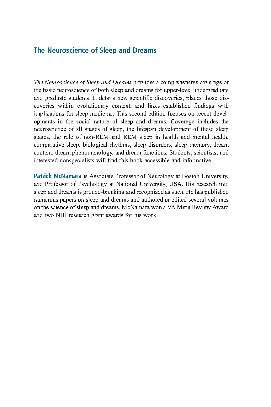 Unlock the mysteries of the mind with this comprehensive guide to 'The Neuroscience of Sleep and Dreams.' This latest 2025/2026 second edition, authored by Patrick McNamara, is your essential resource for mastering the complex topics of sleep cycles, dream analysis, and sleep disorders from a neuroscientific perspective. Designed to help you excel in your exams, this guide provides clear explanations and in-depth insights, ensuring you grasp key concepts to pass on your first attempt. Prepare for academic success and avoid resits by delving into the cutting-edge science behind our sleeping and dreaming brains.