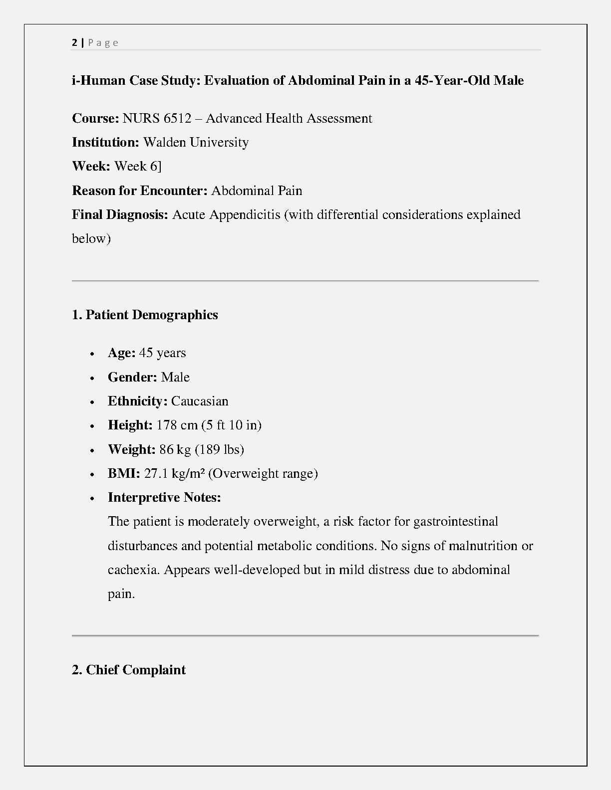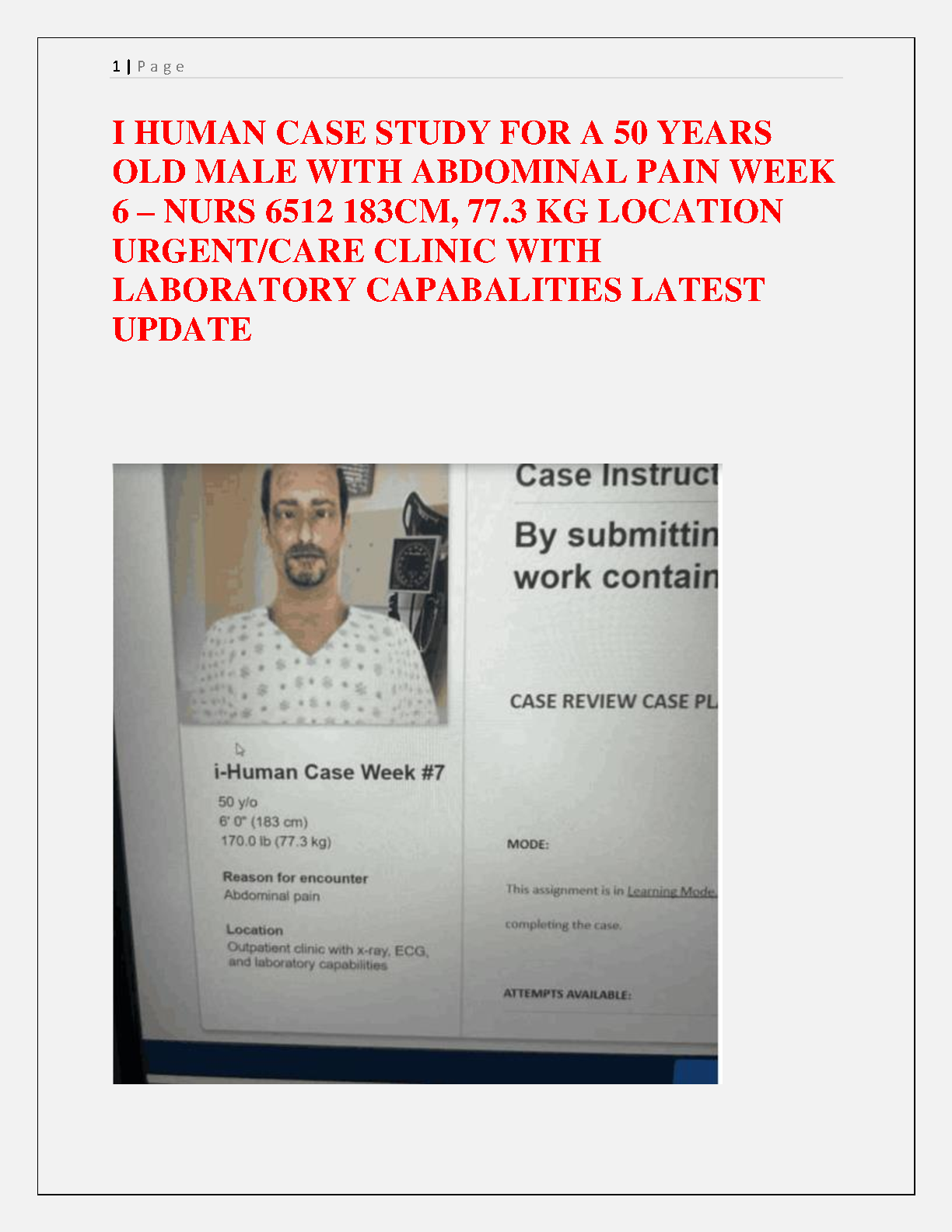 NURS 6512 i-Human Case Study: 50-Year-Old Male with Abdominal Pain | Latest 2025/2026 Exam Guide to Pass First Try