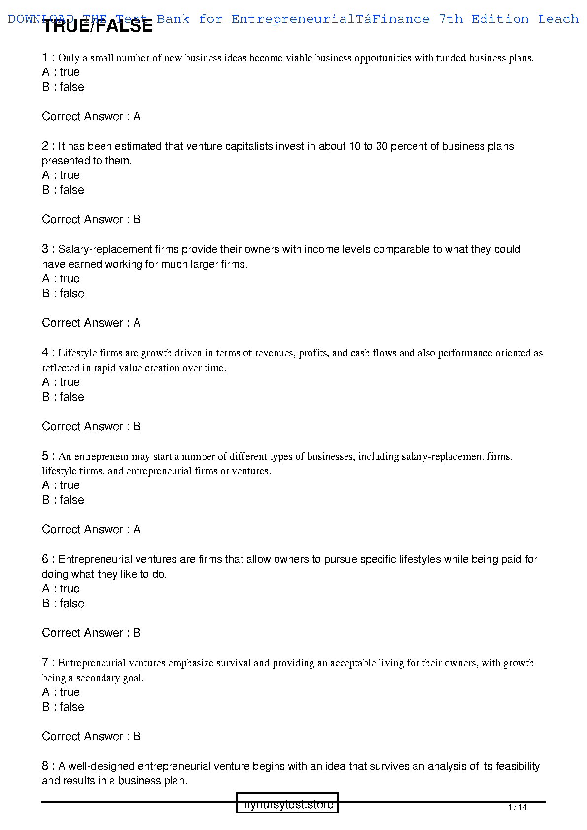 Official Test Bank for Entrepreneurial Finance, 7th Edition by J. Chris Leach & Ronald W. Melicher