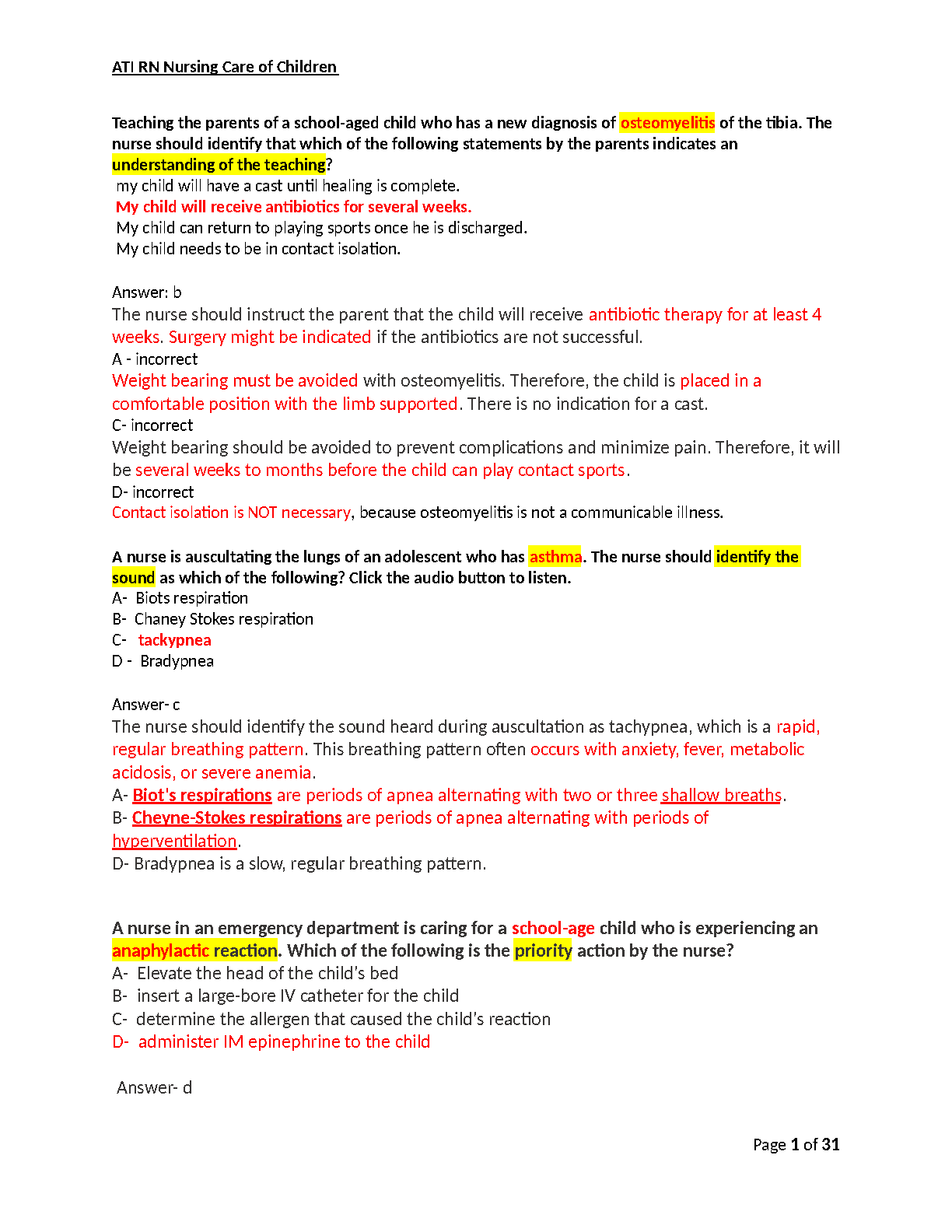 Prepare to excel in your pediatric nursing course with our comprehensive test bank for the ATI RN Nursing Care of Children Proctored Exam. This newly updated resource for the 2025/2026 academic year is meticulously designed to help you master key concepts and pass on your first attempt. Inside, you'll find a vast collection of practice questions, detailed answers, and expert rationales that mirror the actual exam format. Stop stressing about resits and start studying smarter. Download now to secure your top grade!