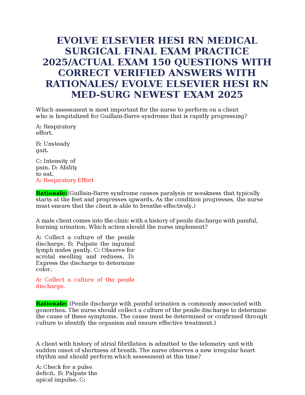 Master the HESI RN Med-Surg Final Exam 2025: Evolve Elsevier Test Bank with 150 Questions, Answers, and In-Depth Rationales