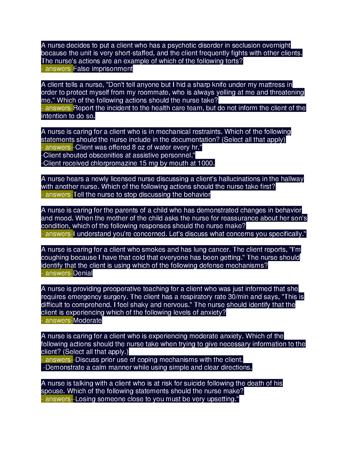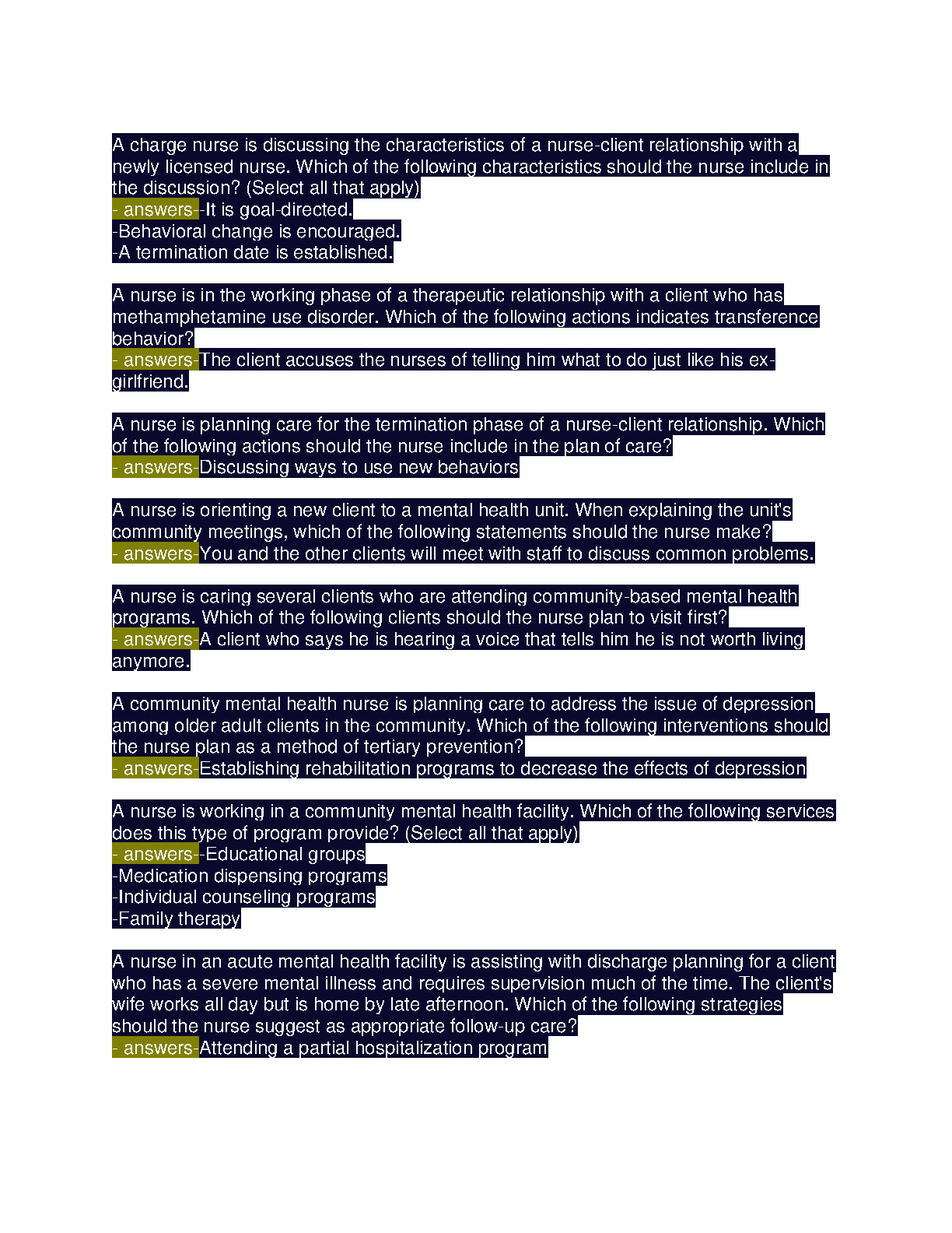 Ace your ATI RN Mental Health Proctored Exam with our comprehensive and meticulously compiled 2024 test bank. This study guide is your ultimate key to success, featuring a complete collection of questions with 100% verified answers designed to help you master the course material and achieve an A+ grade. Sourced directly from the latest curriculum based on 'RN Mental Health Nursing, 12th Edition' by Assessment Technologies Institute, this resource covers all critical topics you'll encounter on the actual exam. From mental status assessments and psychobiological interventions to DSM-5 criteria and emergency care protocols, every question builds your confidence and ensures you're fully prepared. Study smarter, not harder, and secure your guaranteed pass to excel in your nursing career.