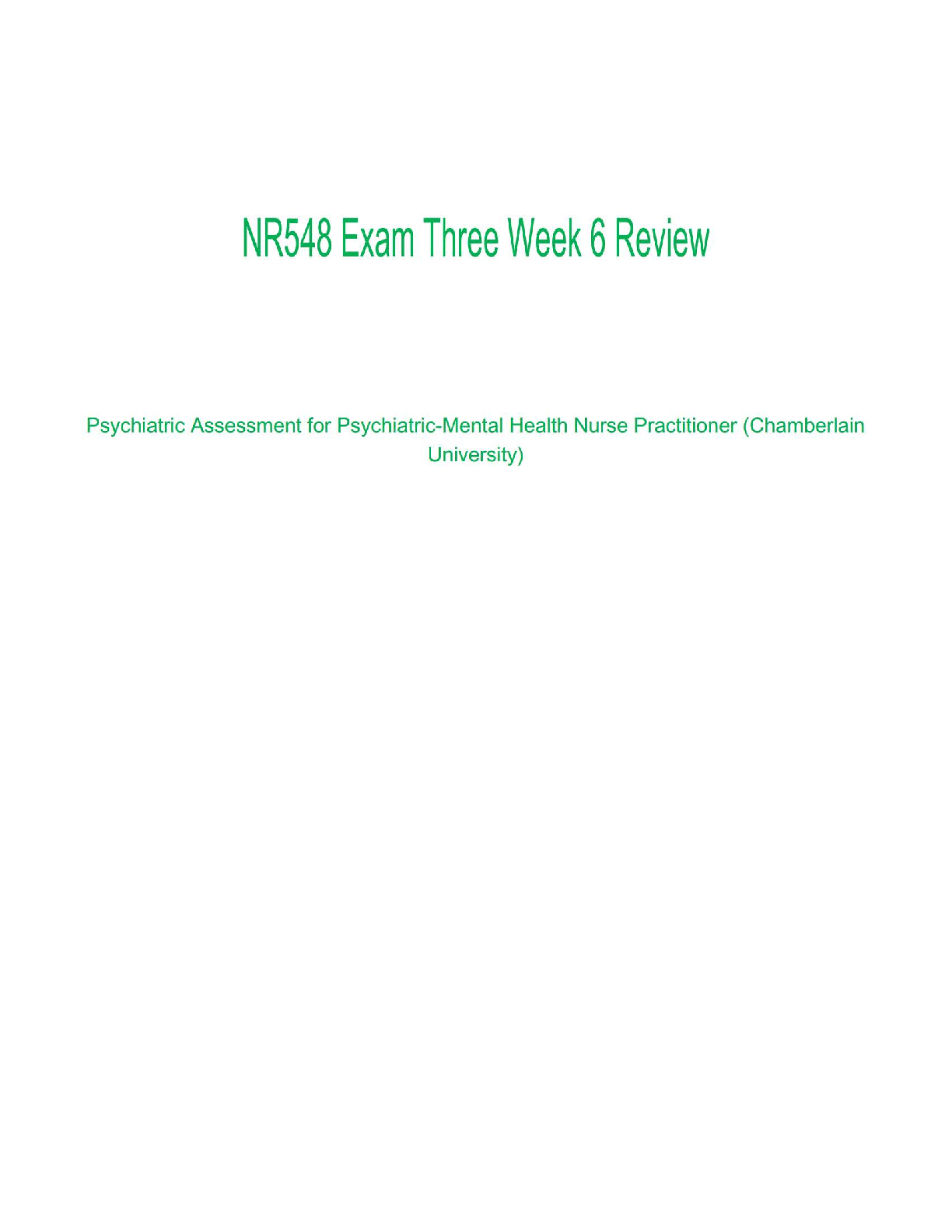 NR548 Psychiatric Assessment Exam 3 & Week 6 Review Guide 2025/2026 | Pass Your Chamberlain Exam First Try!