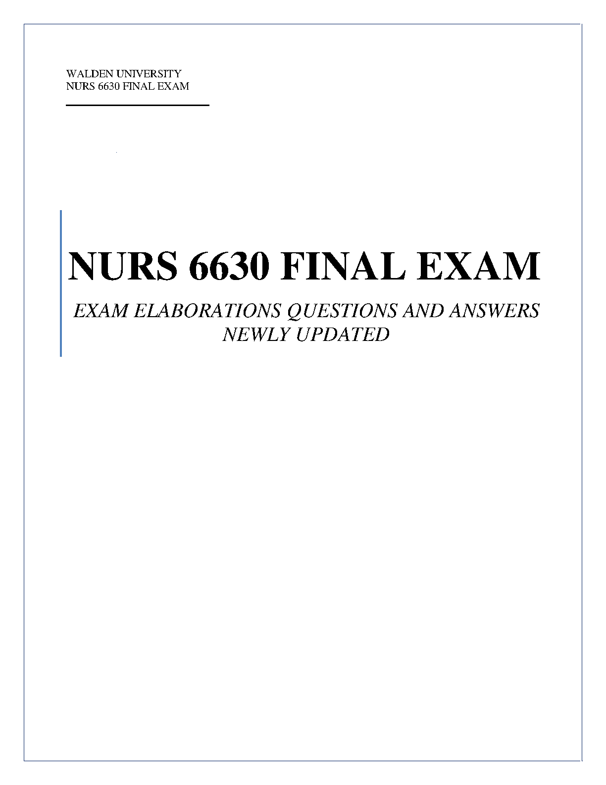 NURS 6630 Final Exam - Walden University | Latest 2025/2026 Exam Elaborations with Questions and Answers for a Guaranteed Pass