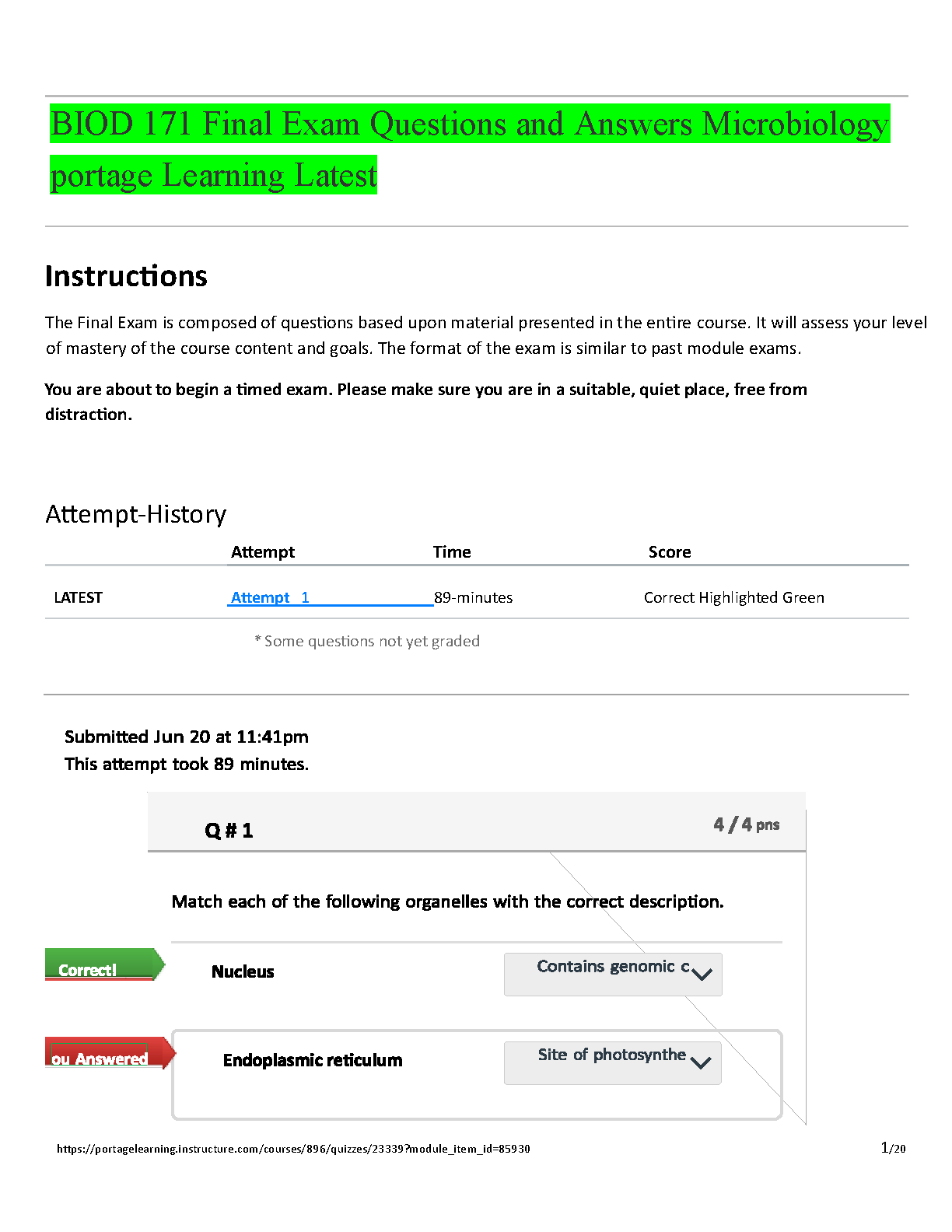 Ace your BIOD 171 Microbiology final exam with confidence! This is the ultimate study guide for the Portage Learning BIOD 171 course, updated for the 2025/2026 academic year. It features a complete compilation of the final exam questions, each paired with detailed, 100% correct and verified answers. The material covers all key topics from the entire microbiology syllabus, ensuring you are fully prepared. Designed to help you master the course content and understand the exam format, this resource is your key to passing on the first attempt and avoiding costly resits. Study smart, not hard, and secure a top grade!