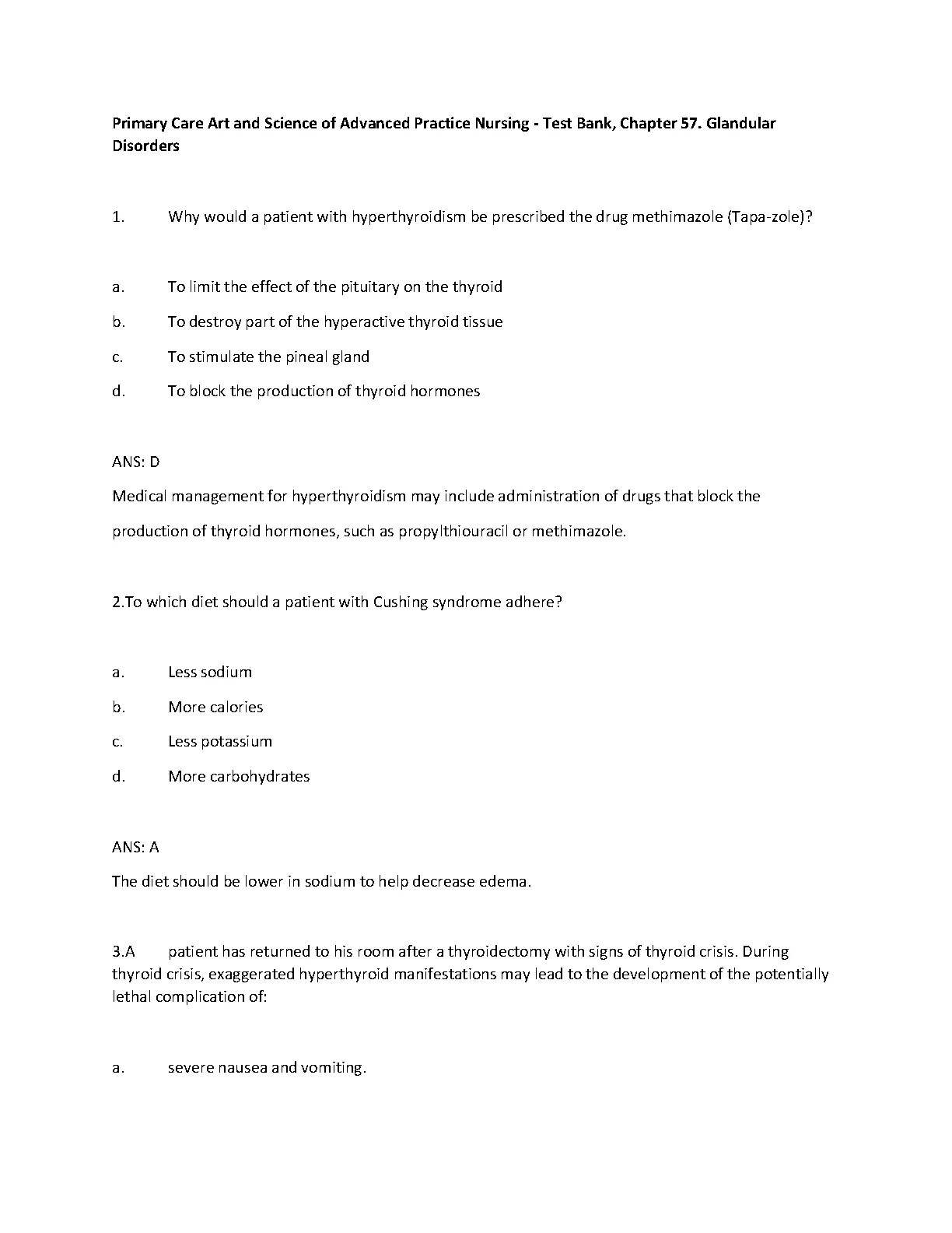 Primary Care Art and Science of Advanced Practice Nursing - Test Bank, Chapter 57. Glandular Disorders. DOWNLOAD on www.hackedexams.com INSTANTLY.