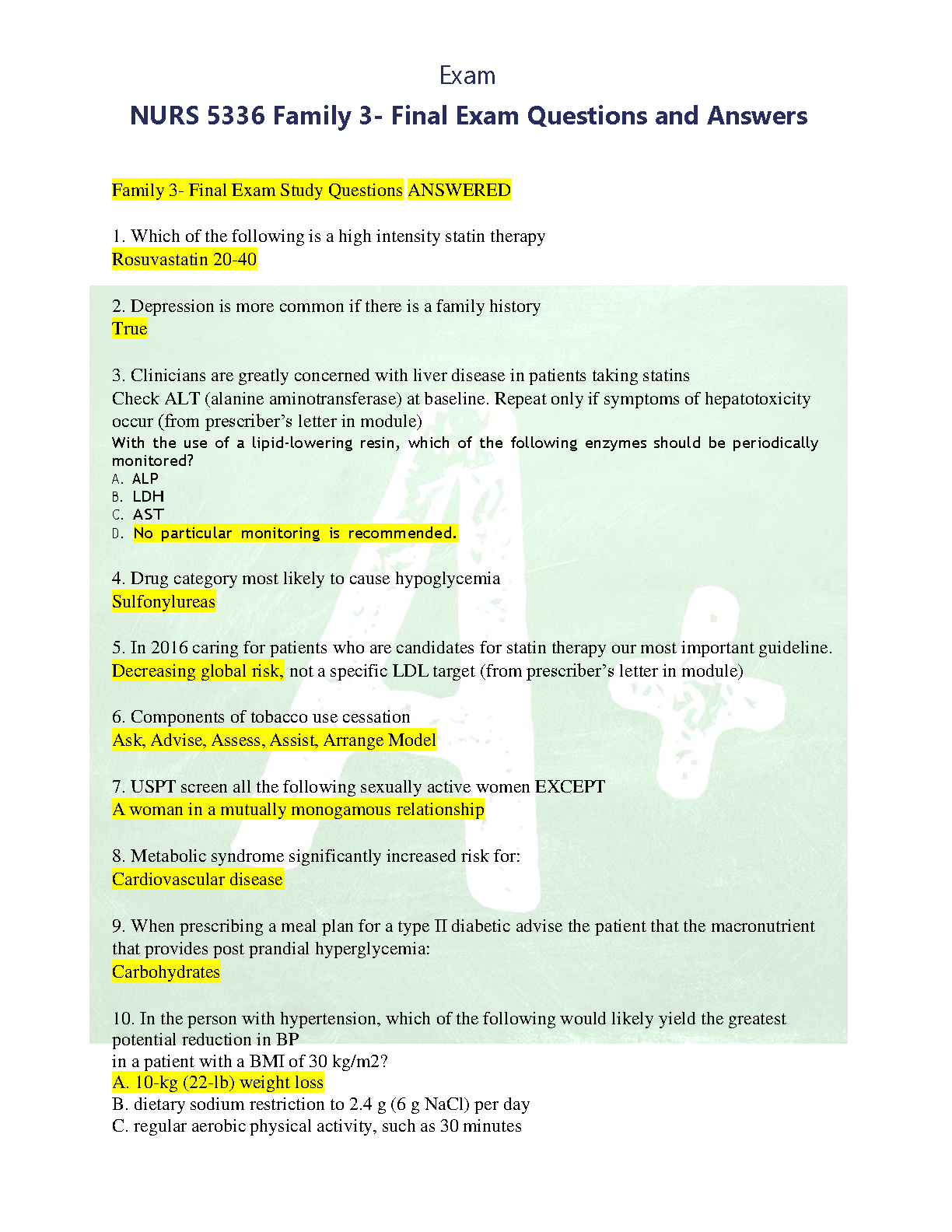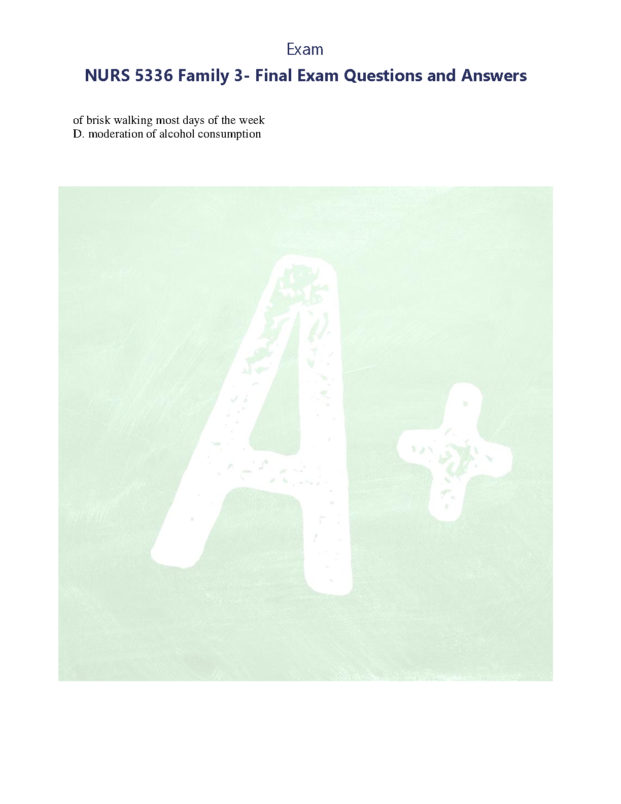 Ace your NURS 5336 Family 3 final exam with our meticulously compiled question and answer guide, fully updated for the 2025/2026 academic year. This essential study resource provides a comprehensive collection of potential exam questions, each with a detailed, verified answer. Designed to help you master complex topics and boost your confidence, this guide is your key to passing on the first attempt. Stop stressing about resits and start preparing for success. Download now and secure the grade you deserve!