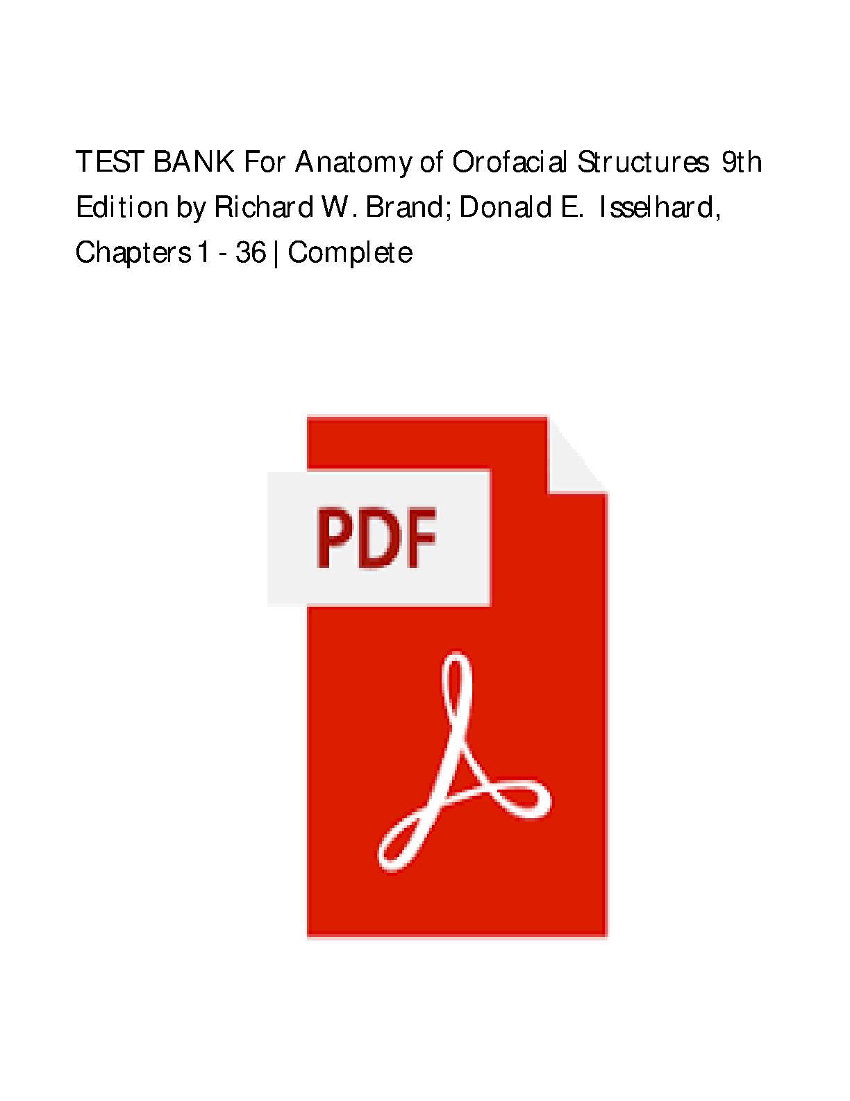 Test Bank for Anatomy of Orofacial Structures: A Comprehensive Approach, 9th Edition by Richard W. Brand and Donald E. Isselhard - Complete Chapters 1-36