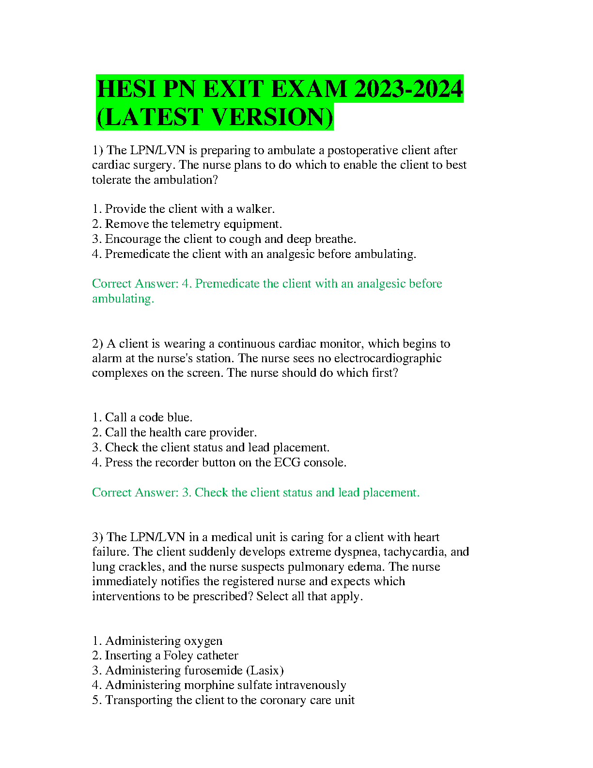 HESI PN Exit Exam Test Bank 2025-2026 Edition | Latest Questions & Verified Answers to Pass First Try