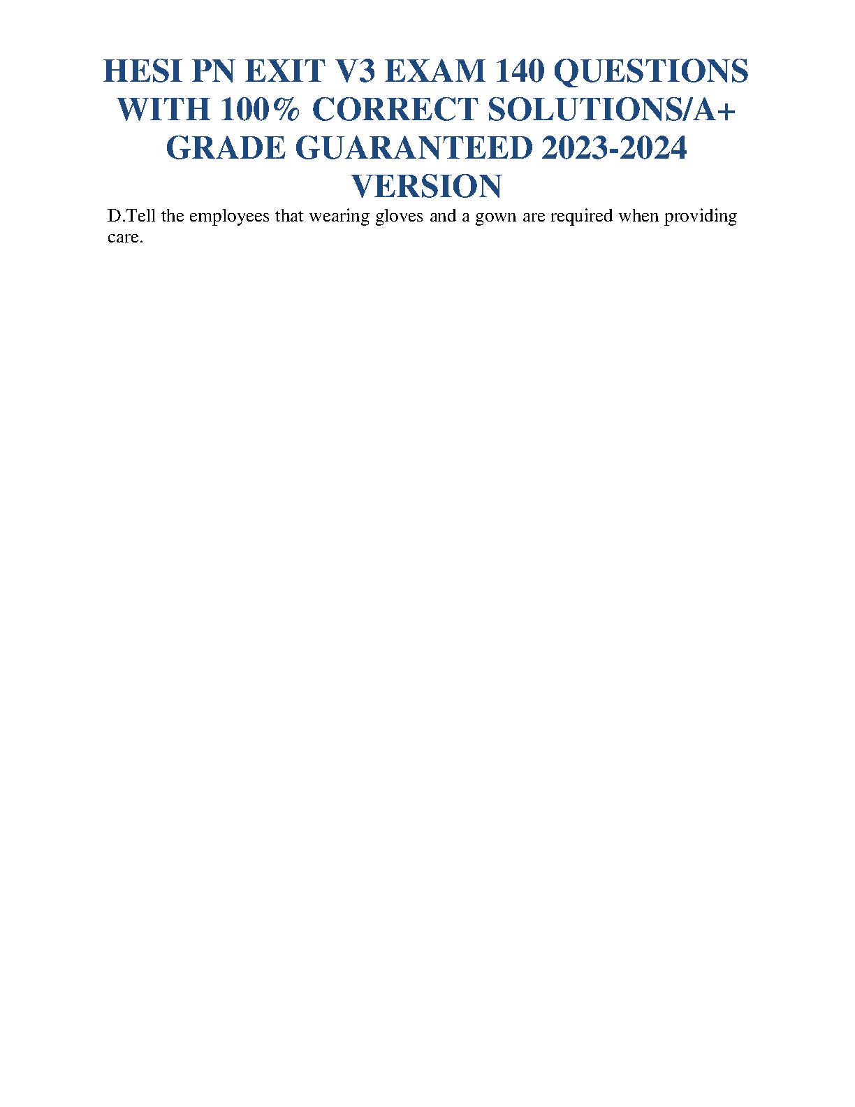 Unlock your potential and ace the HESI PN Exit V3 Exam on your first try with our comprehensive 2025/2026 test bank. This guide is expertly compiled to provide you with everything you need for success. Inside, you'll find a complete set of 140 exam-style questions, each paired with a 100% correct and verified answer. This resource is designed to help you master key nursing concepts, build confidence, and walk into your exam fully prepared for an A+ grade. Stop worrying about resits and start studying smarter with our guaranteed success package.