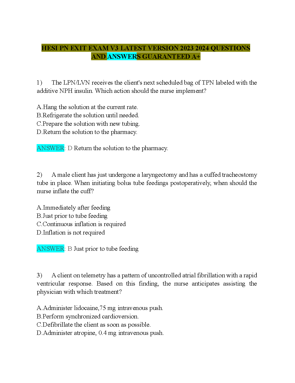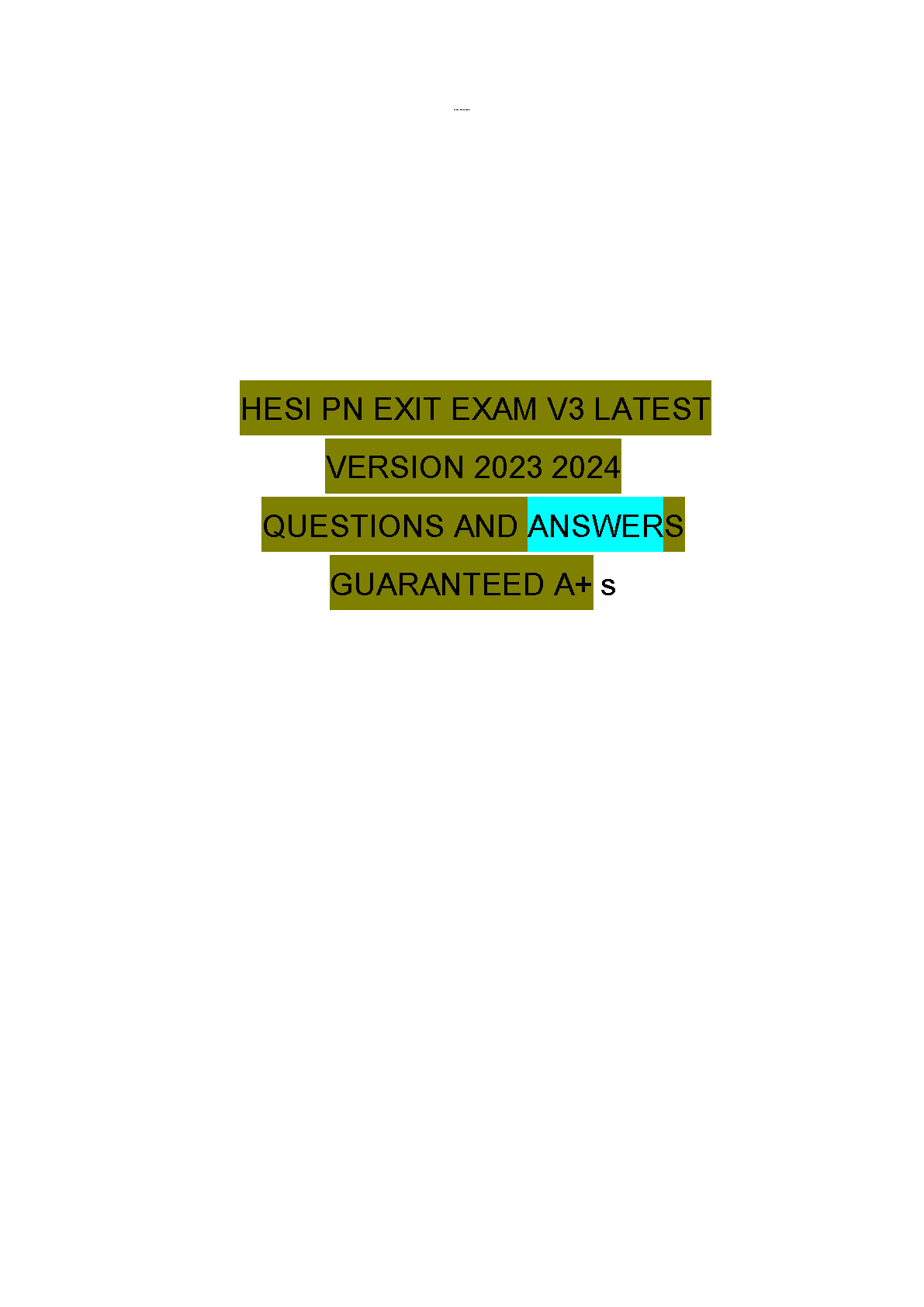 HESI PN Exit Exam V3 Test Bank 2024: Complete Questions and Verified Answers for a Guaranteed A+ Grade