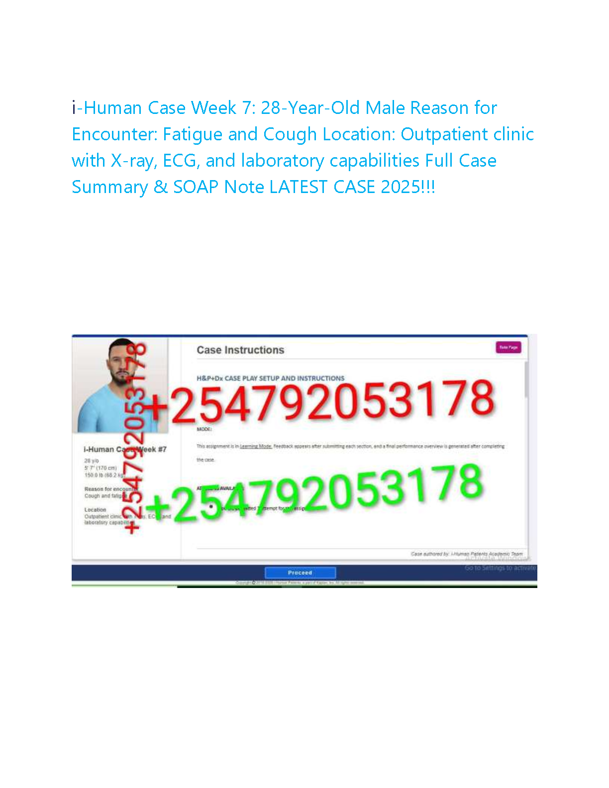 Master your clinical skills with our comprehensive guide for the i-Human Case Week 7, featuring a 28-year-old male presenting with fatigue and cough. This latest 2025/2026 resource provides a complete case summary and a meticulously crafted SOAP note to help you navigate the simulation successfully. It's the ultimate study aid to ensure you understand the diagnostic process, formulate a strong differential diagnosis, and excel in your coursework, helping you pass on your first attempt and avoid resits.