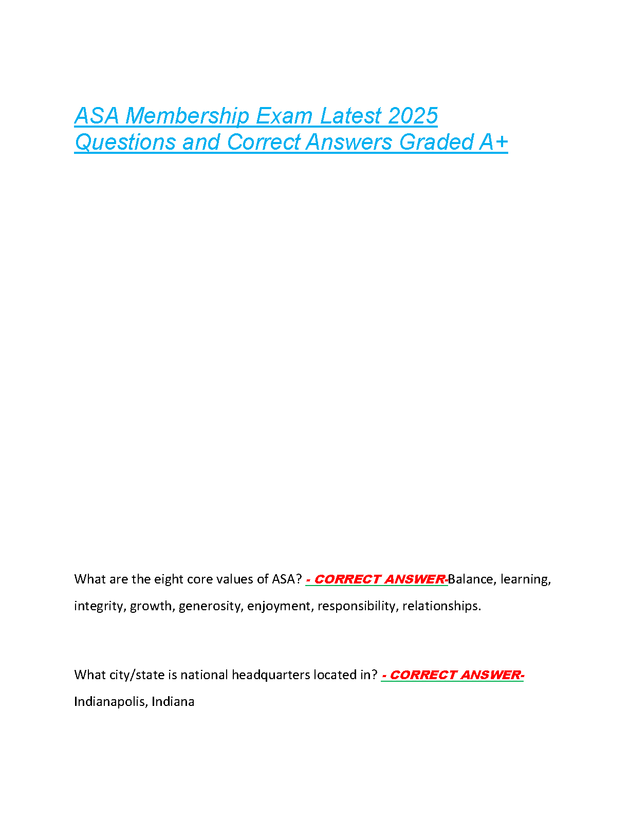 ASA Membership Exam 2025 Test Bank: American Staffing Association Certification Study Guide with Questions and Verified Answers